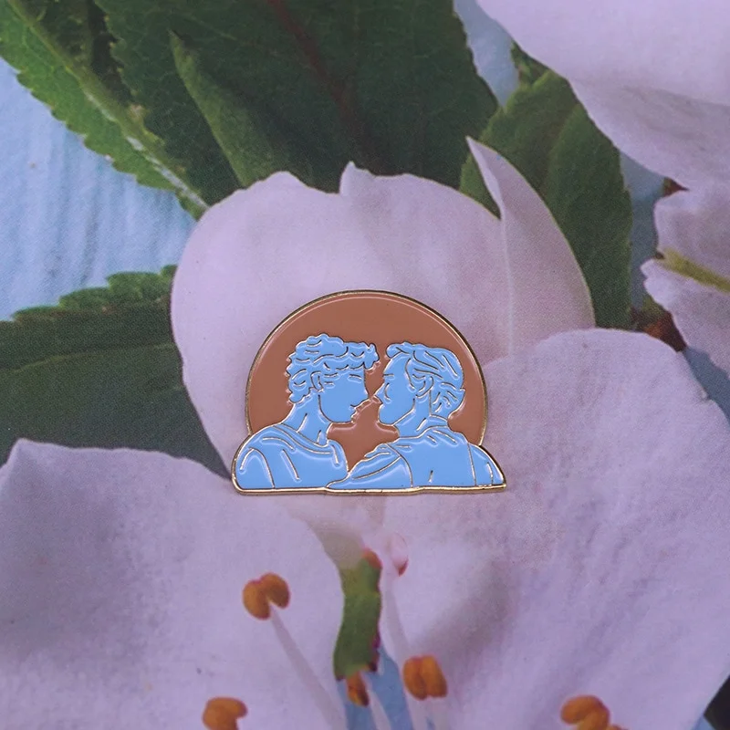 Movies LGBT Enamel Pins Gay Sweet Love Pins Subtle Peach Badges Two Men's Love Movie Fans Beautiful Gifts