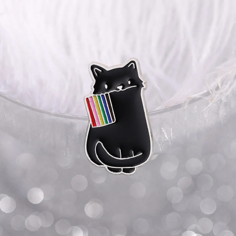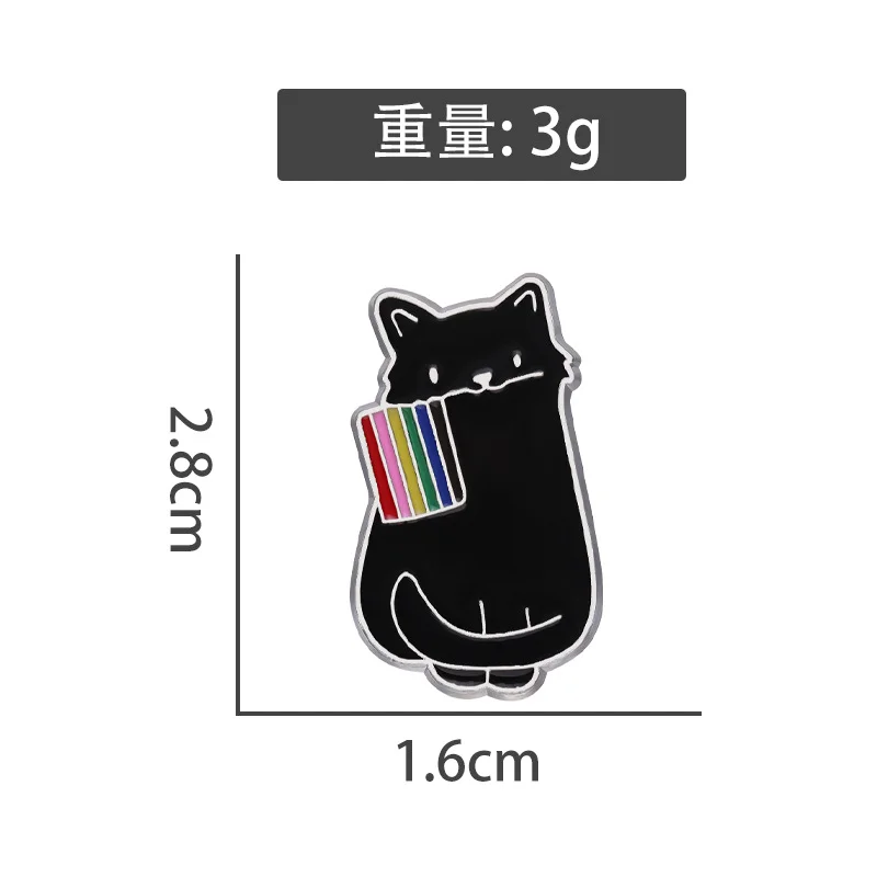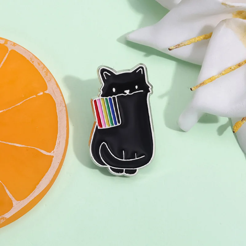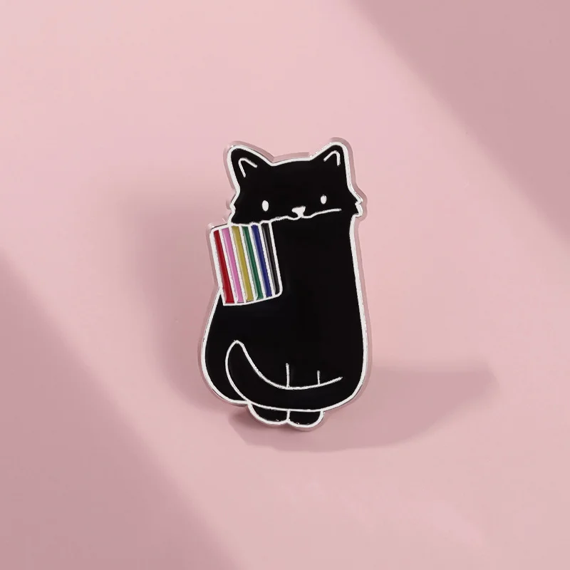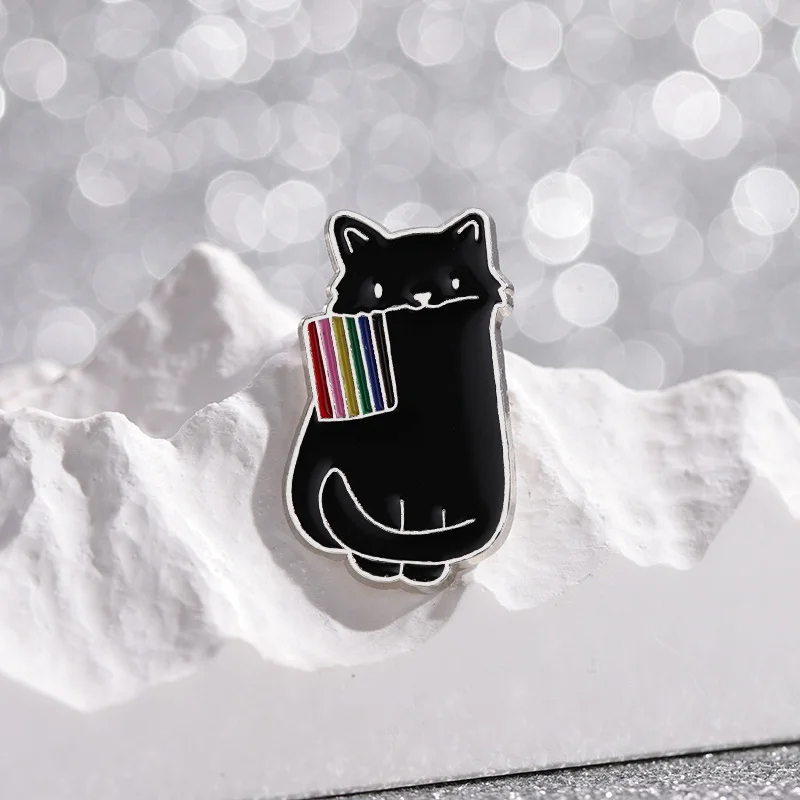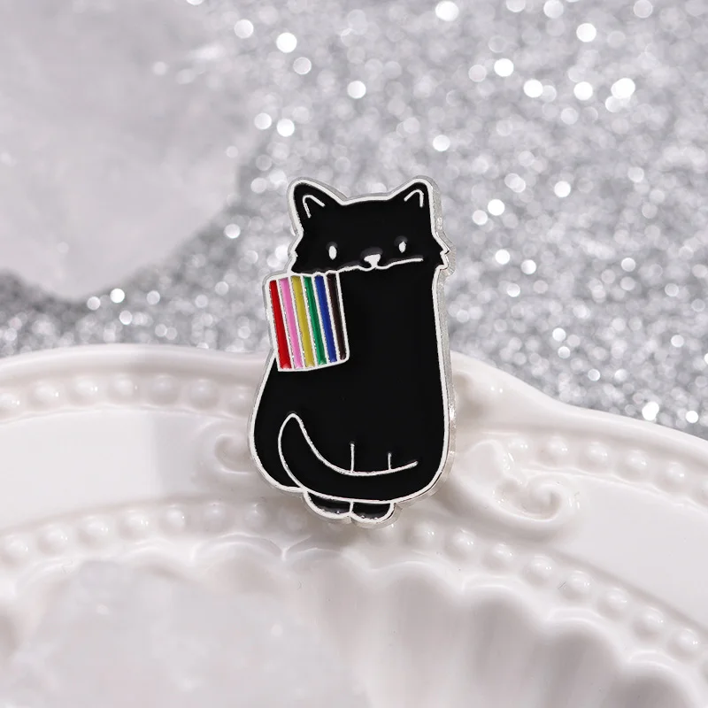 Cute Cartoon Black Cat Biting The Flag Enamel Pin Brooch Animal Badge Rainbow Flag Gay Jewelry Clothing Simple Pin