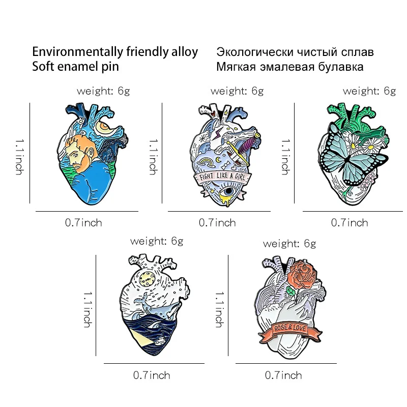 Cartoon Creative Personality Heart Brooch Badge Creative Personality Shape Butterfly Wave Letter Brooch Badge