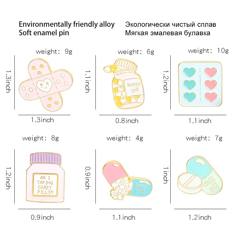 Creative Cartoon Cute Medical Pins Mini Band-aids Pill Capsule Shape Letter Brooch Accessories Wild Paint Badge Doctor and Nurse Gift