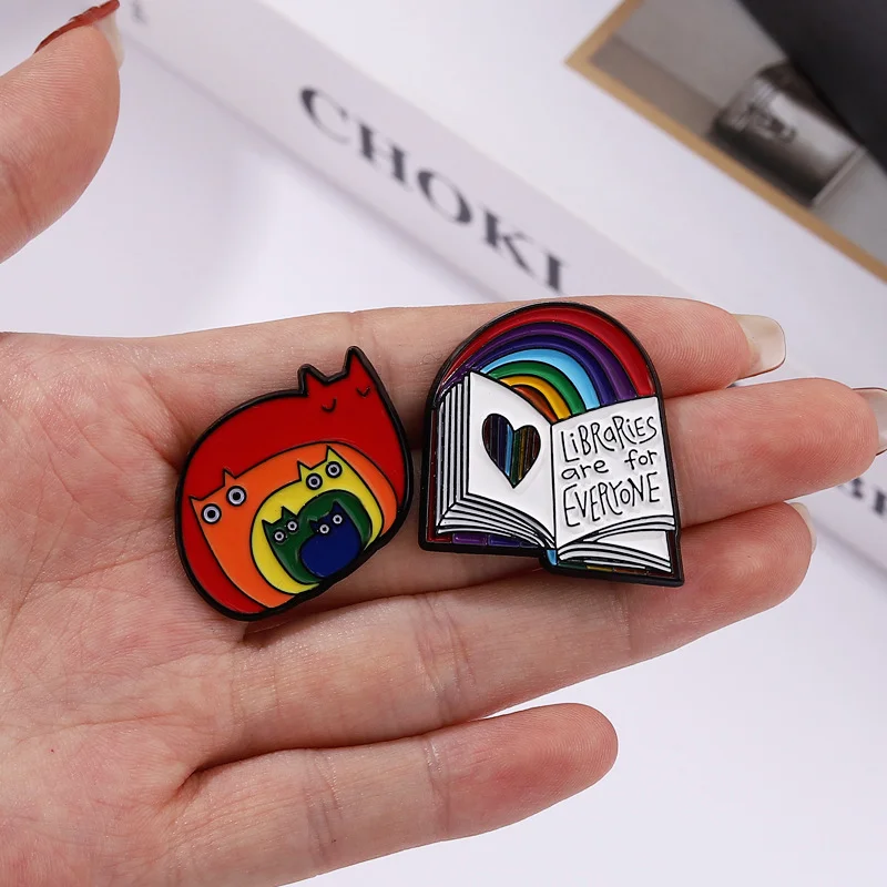 Creative Feather Teeth Love Book Rainbow Cat Animal Homosexual LGBT Series Exquisite Small Gift Jewelry Versatile Metal Badge