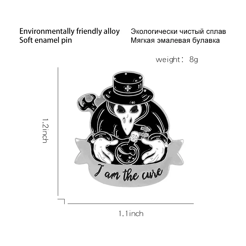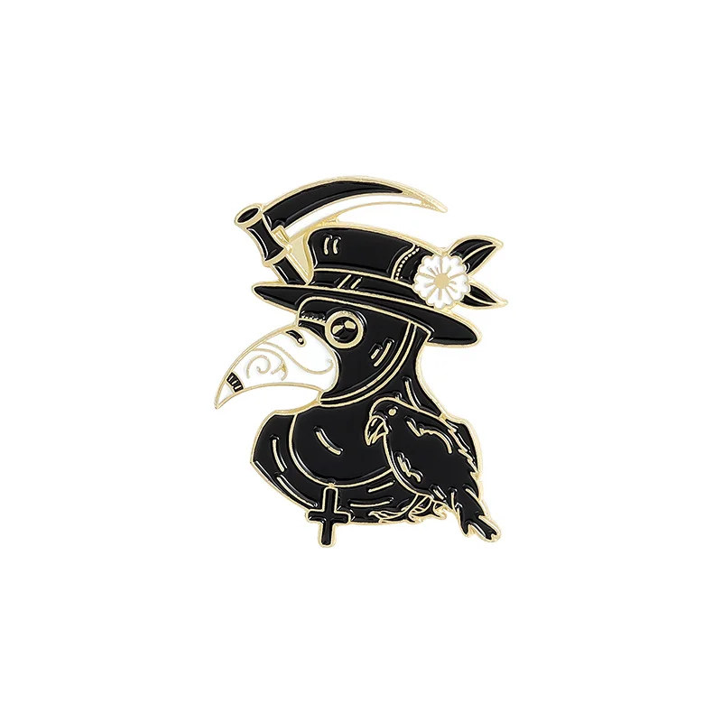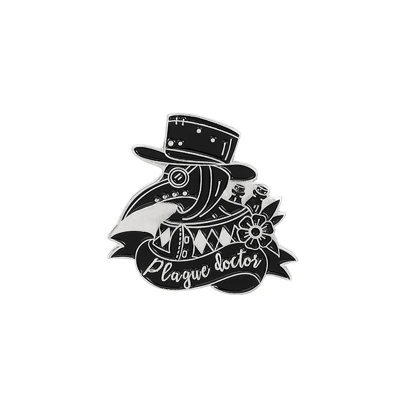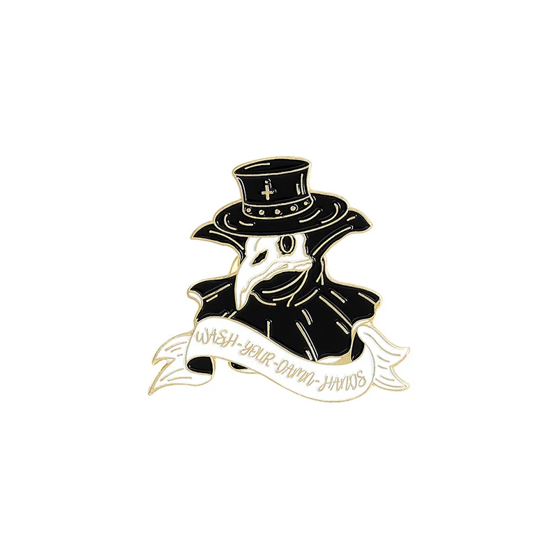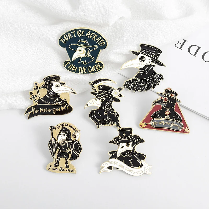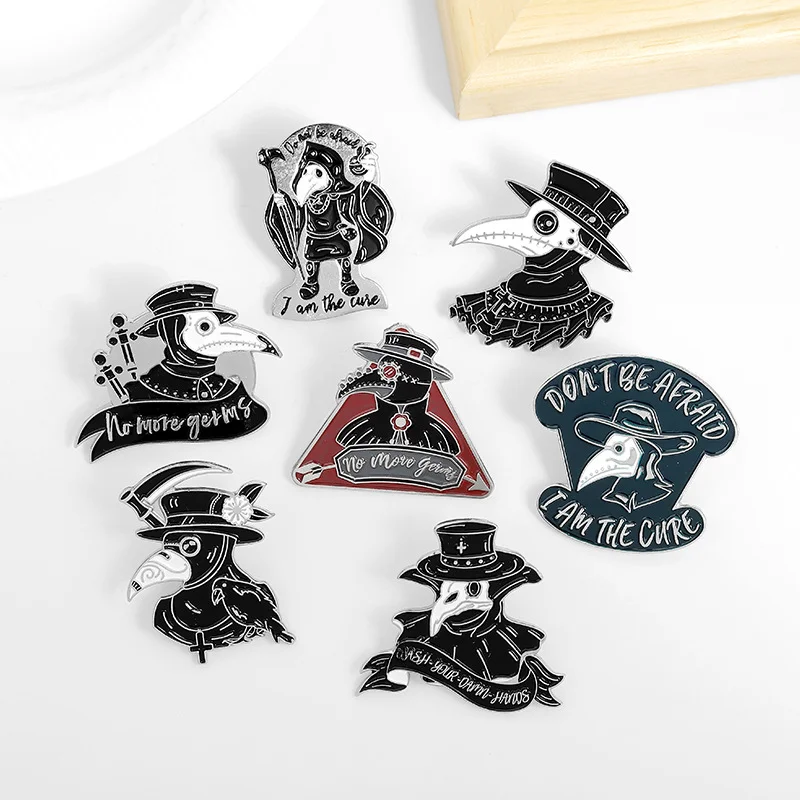 Foreign Trade Amazon Hot Models Plague Doctor Series Jewelry Brooch Creative Personality Cartoon Crow Badge Brooch Text Letter Sentence Brooch Commemorative Brooch