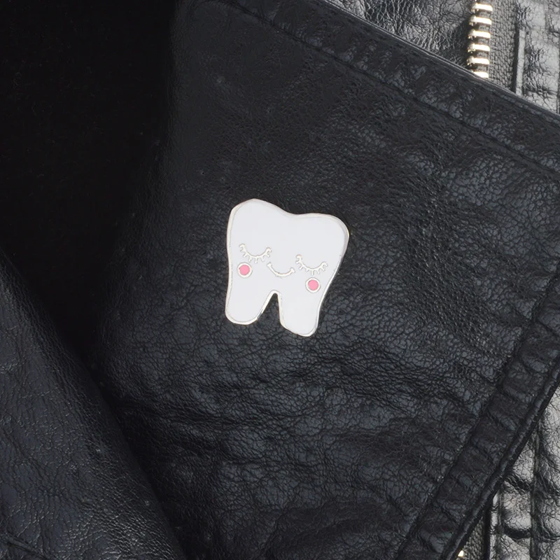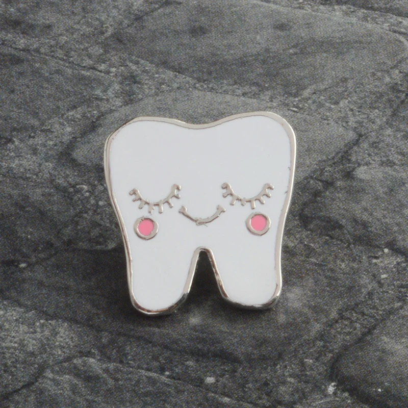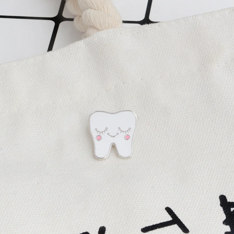 White Cartoon Smile Teeth Enamel Brooches Pin for Nurse Dentist Hospital Lapel Pin Hat/bag Pins Denim Shirt Women Badge Brooch
