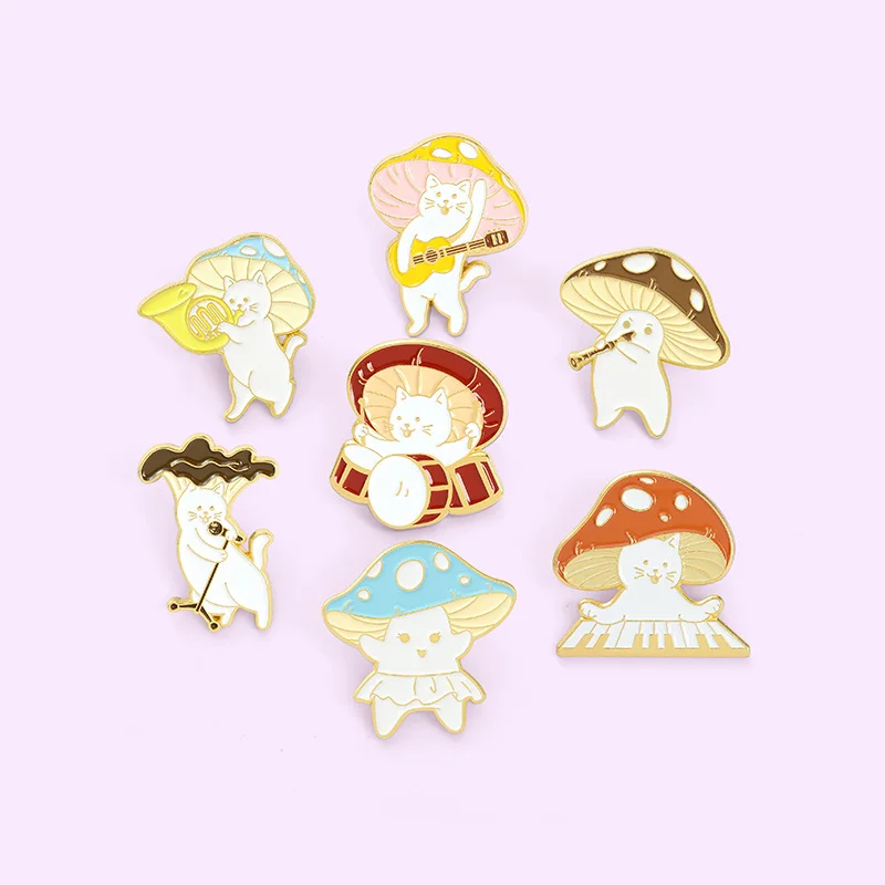 Cartoon New Design Animal Mushroom Series Brooch Cute Cat Musical Instrument Shape All-match Paint Badge Animal Pin Gift Wholesale