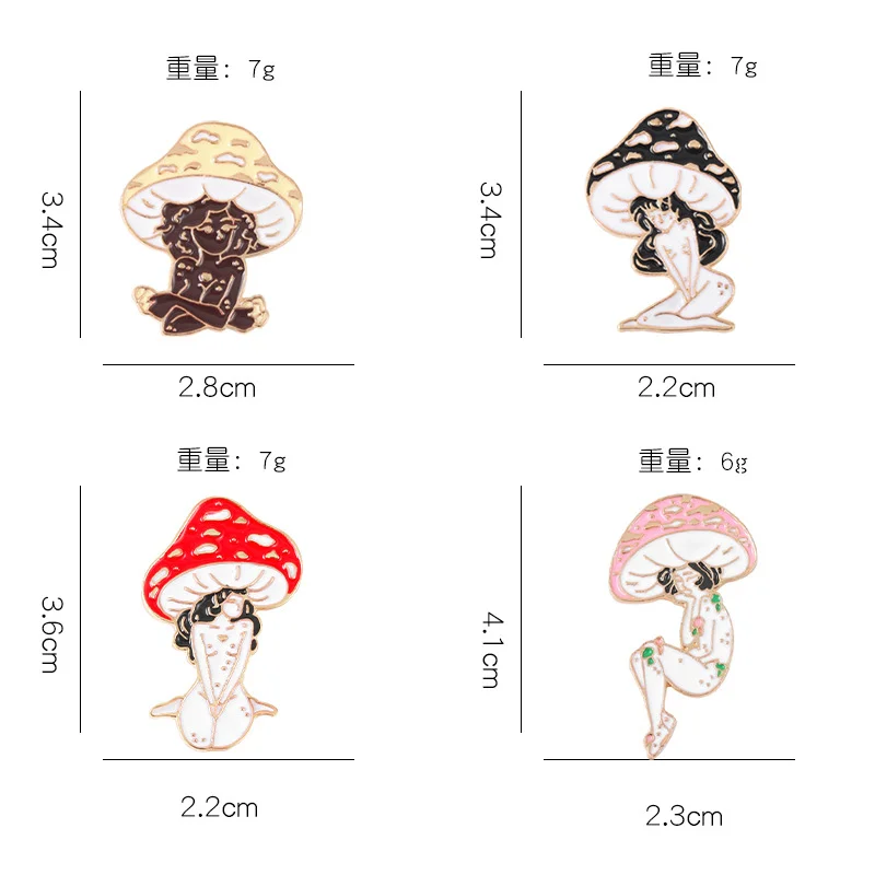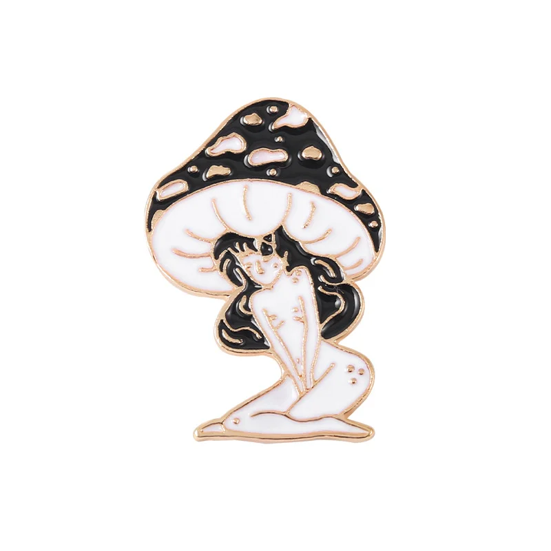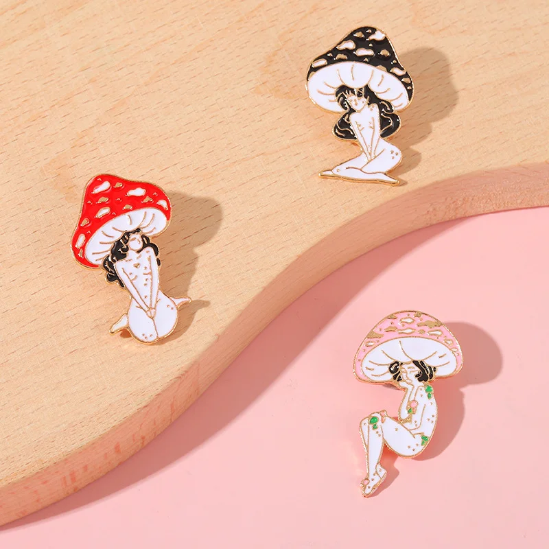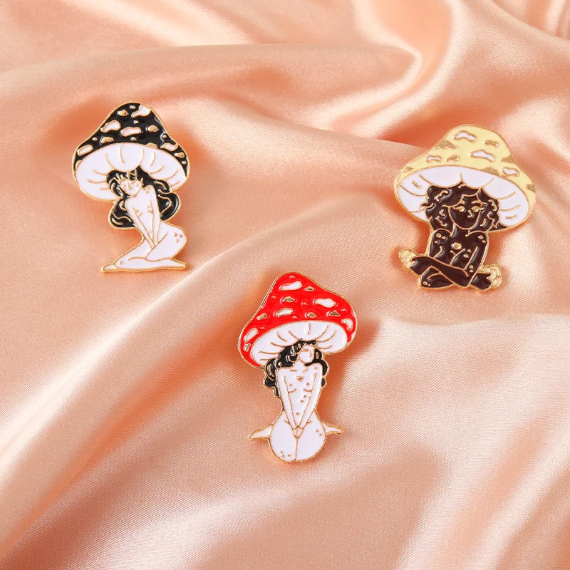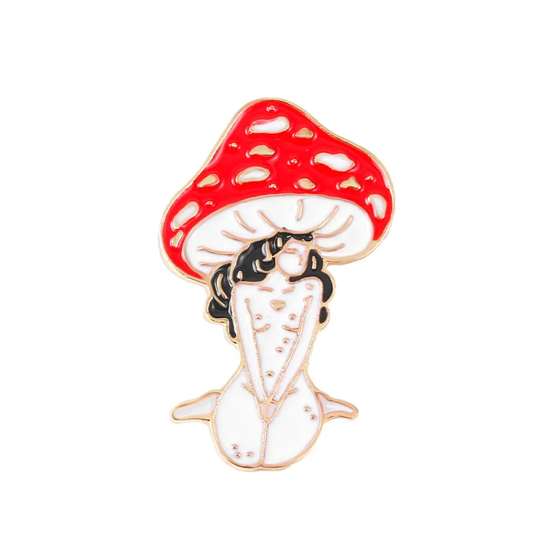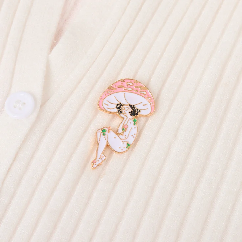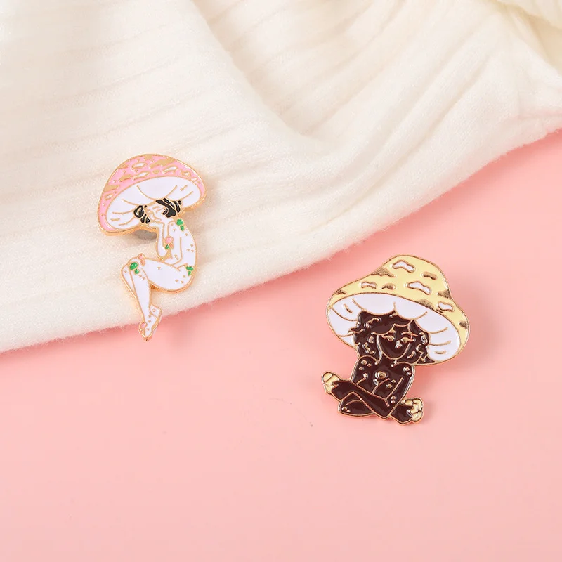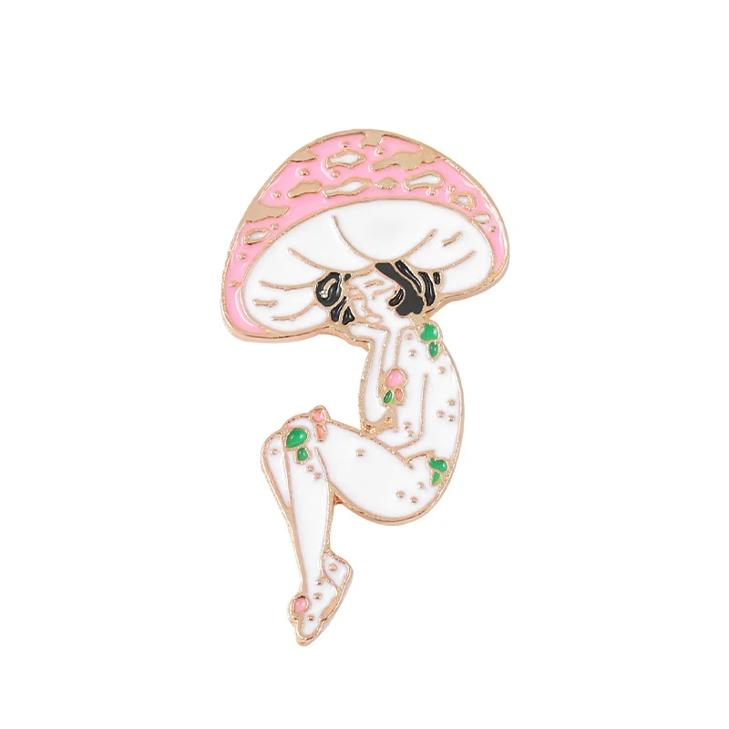 Fashion Enamel Pin Artistic Mushroom Brooch Mushroom Girl Creative Anthropomorphic Plant Metal Brooch Factory Wholesale