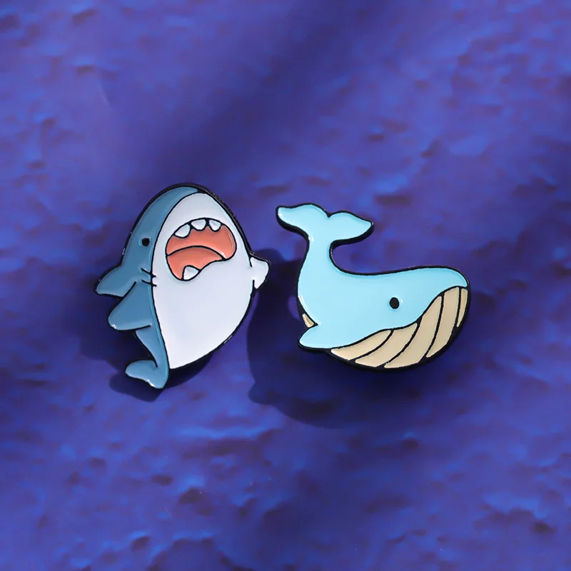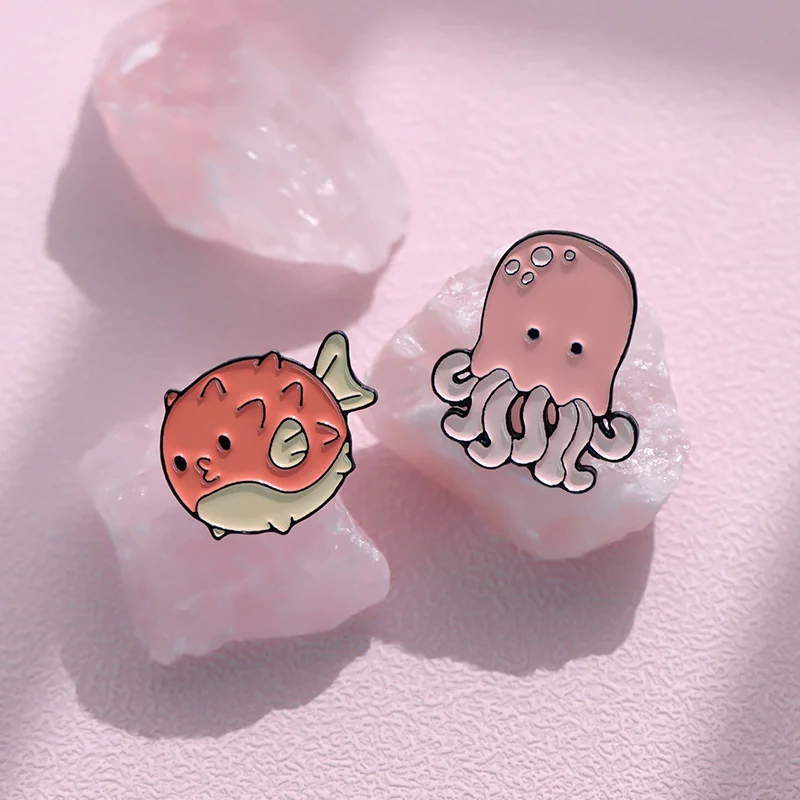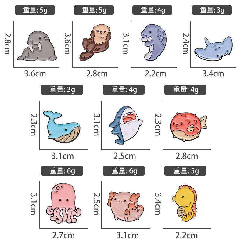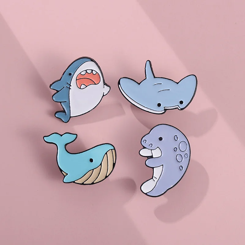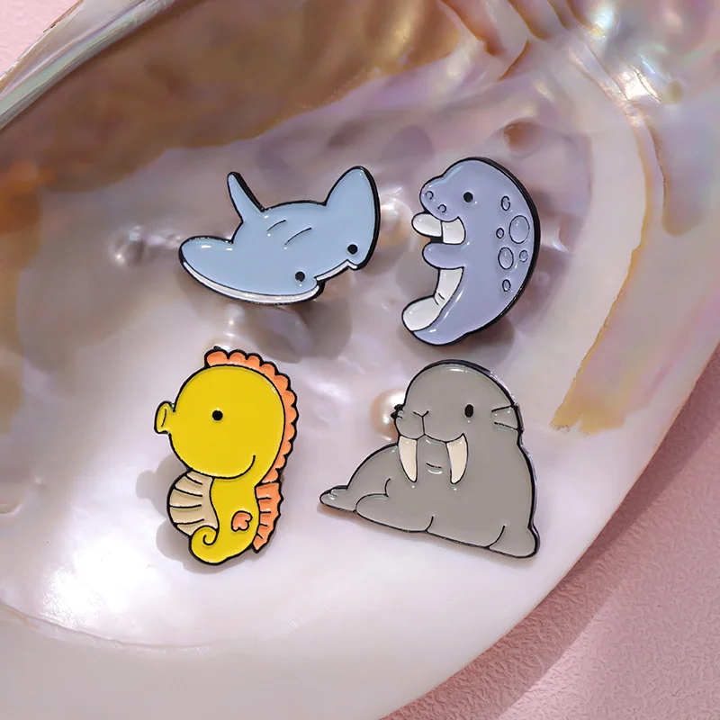 Marine Life Series Enamel Brooch Cute Sea Lion Sea Otter Manatee Manta Ray Shark Whale Seahorse Dolphin Puffer Fish Salamander Ray Animal Metal Badge Personalized Accessories Badge Wholesale