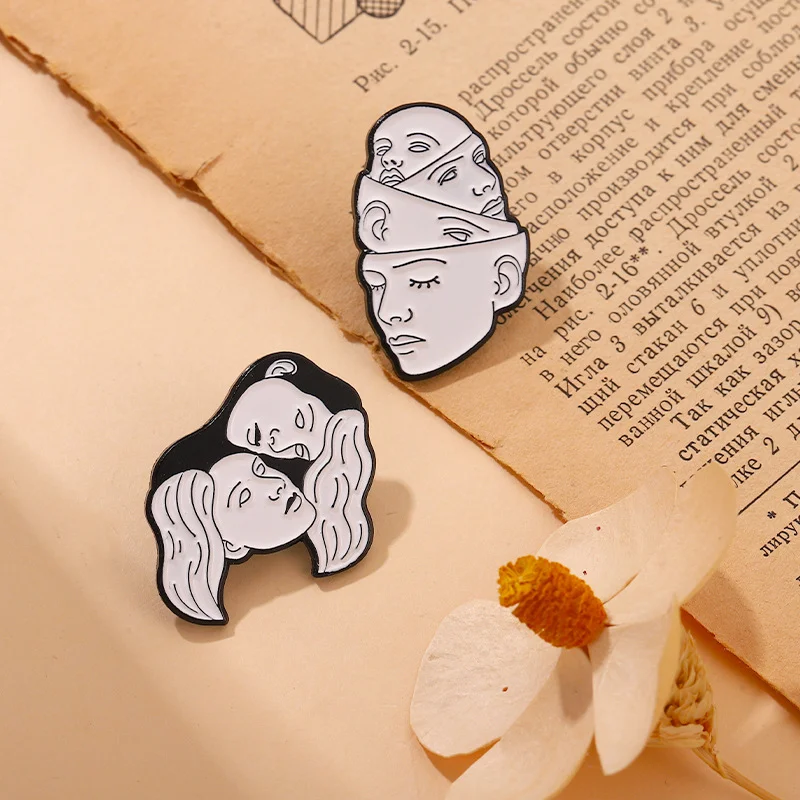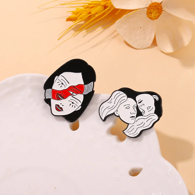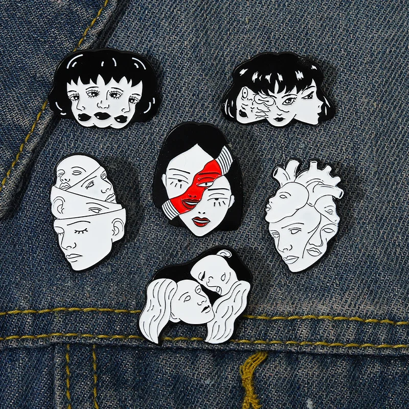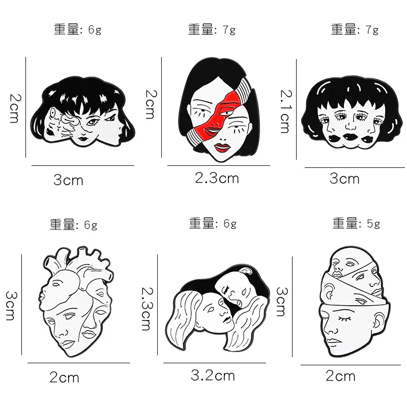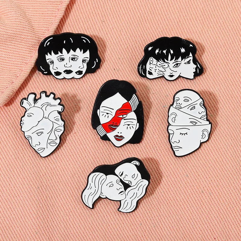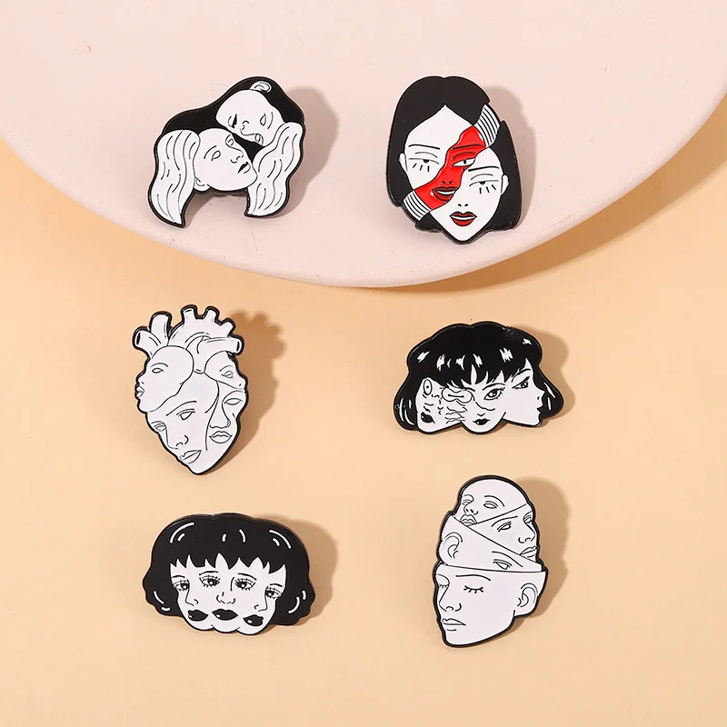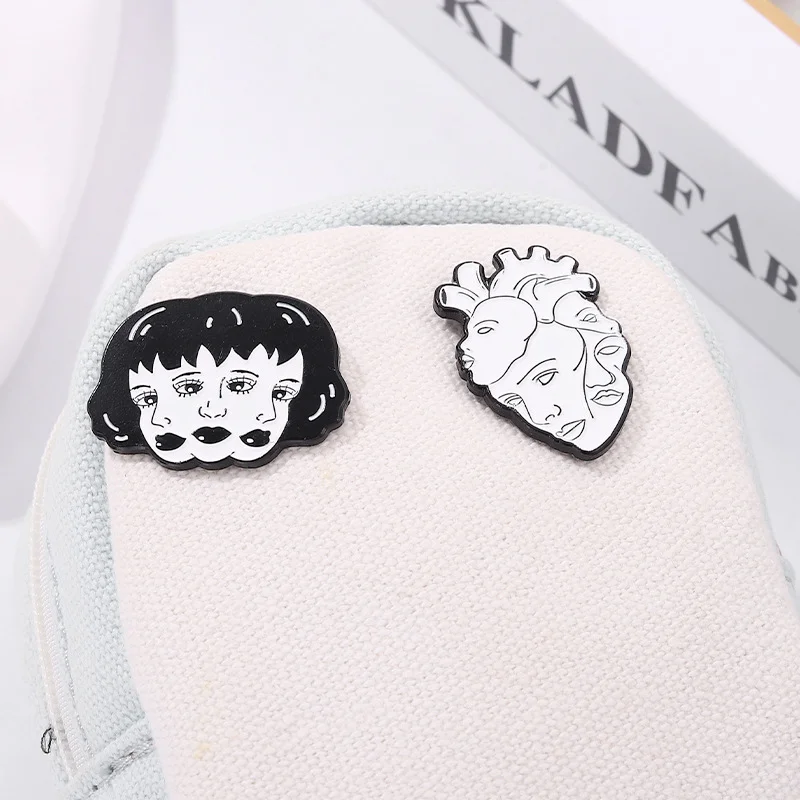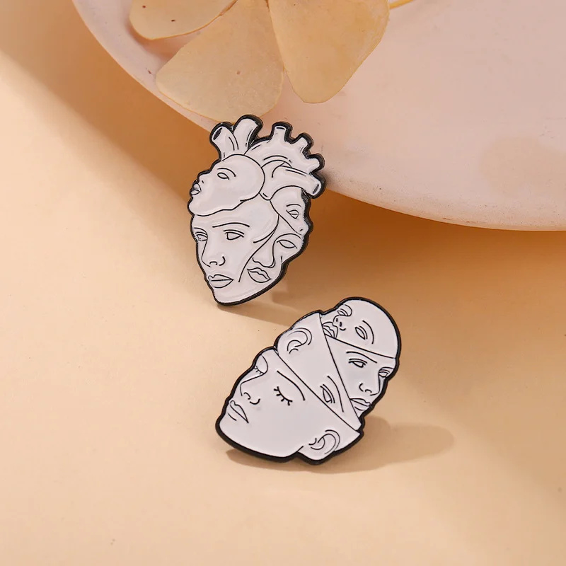 Creative Brooch Man Avatar Art Portrait Heart Face Woman Face Funny Horror Metal Badge Enamel Pin Clothing Accessories