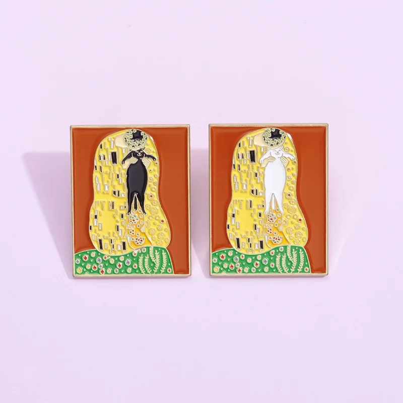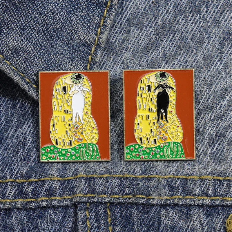 Oil Painting Series Van Gogh Klimt's Kiss White Black Cat Premium Art Clothing Accessories Wholesale Artist Gifts