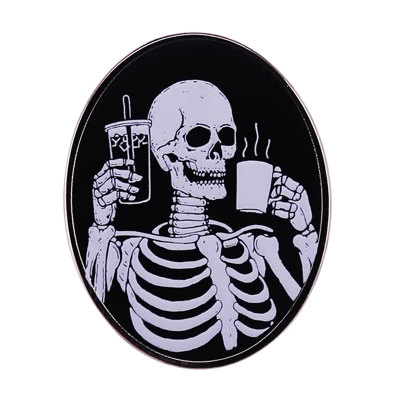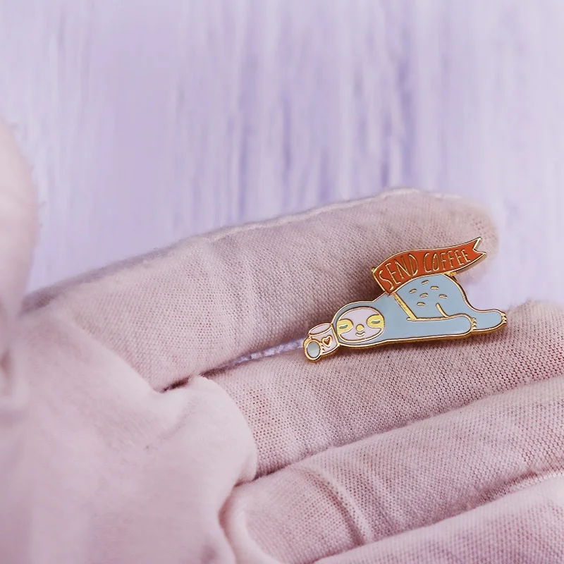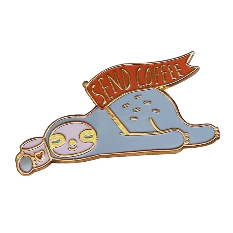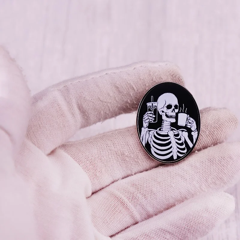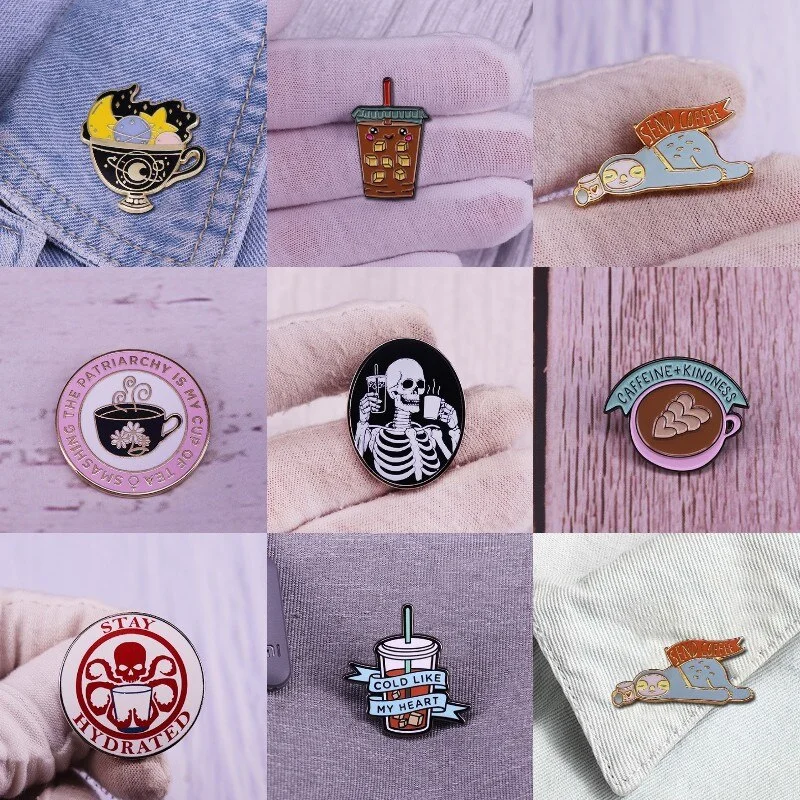 Cute Sloth Cup Enamel Pins Scary Octopus Skeleton Brooches Cup Pins Backpack Hat Badges Girls Friends Jewelry