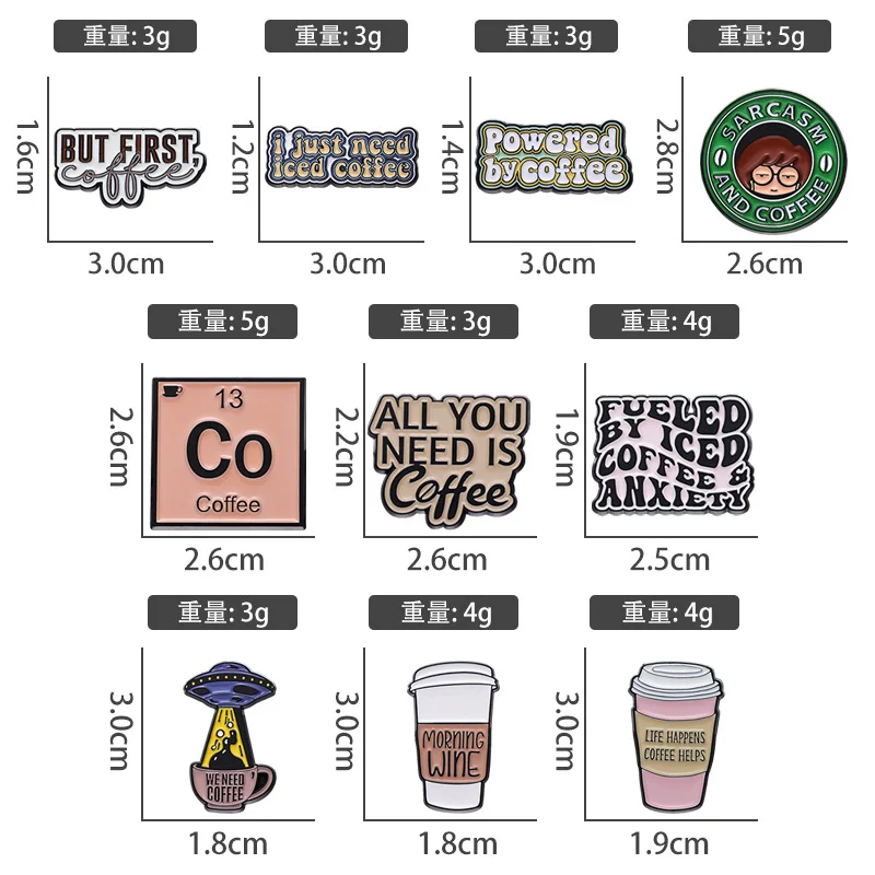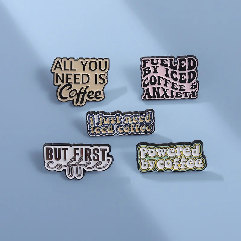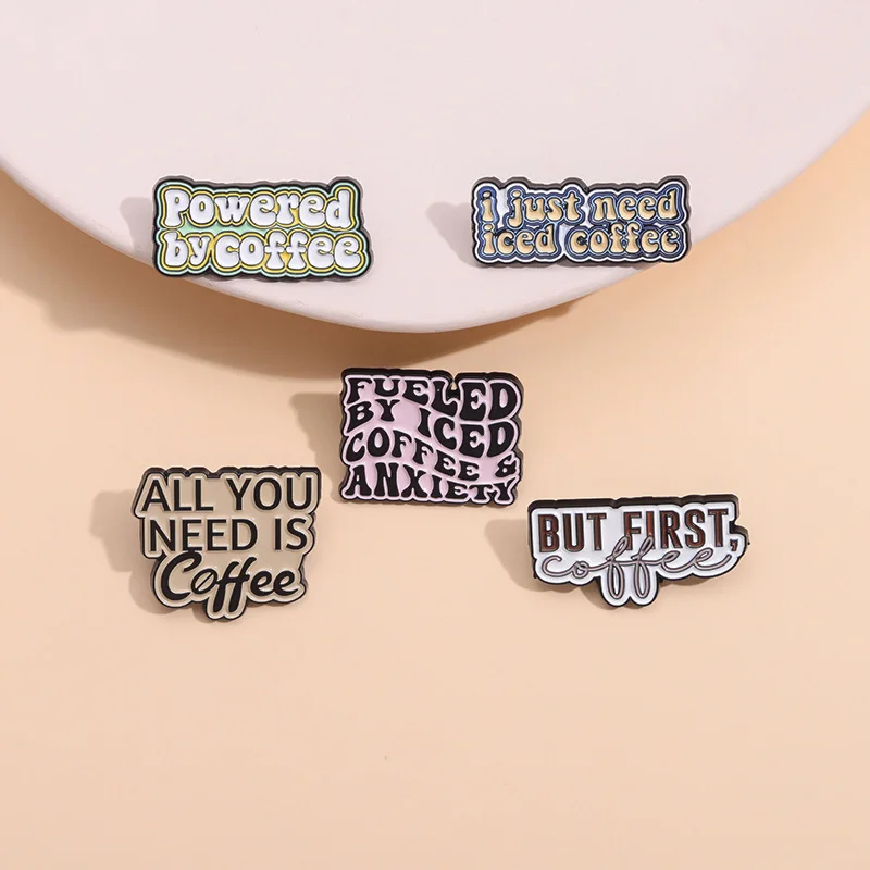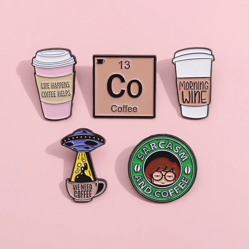 Enamel Brooch Coffee Cup English Letter Shape Alien Spacecraft Metal Badge Clothing Accessories Scarf Buckle