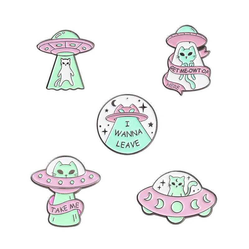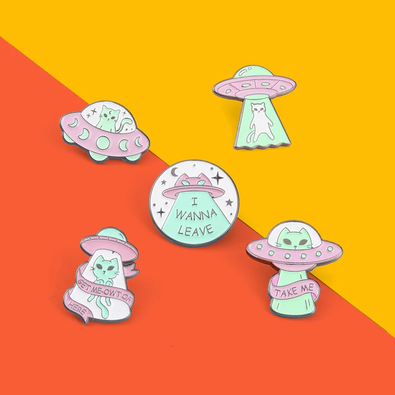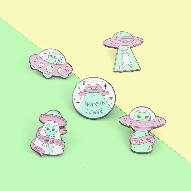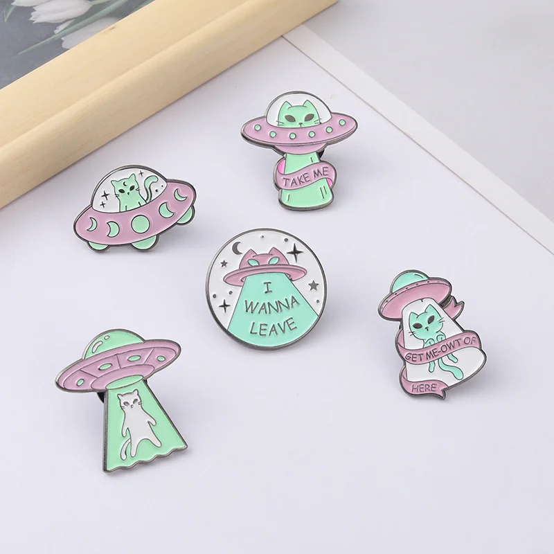 European and American Cartoon Accessories, Creative Aliens, Spaceship-shaped Paint Alloy Badges, Wholesale Accessories Brooches