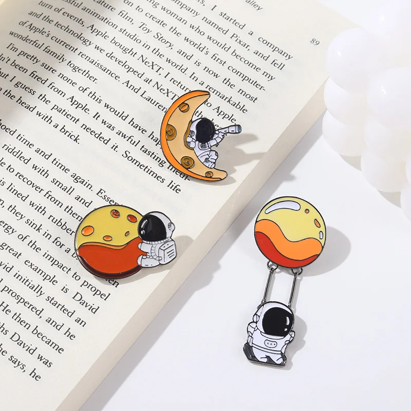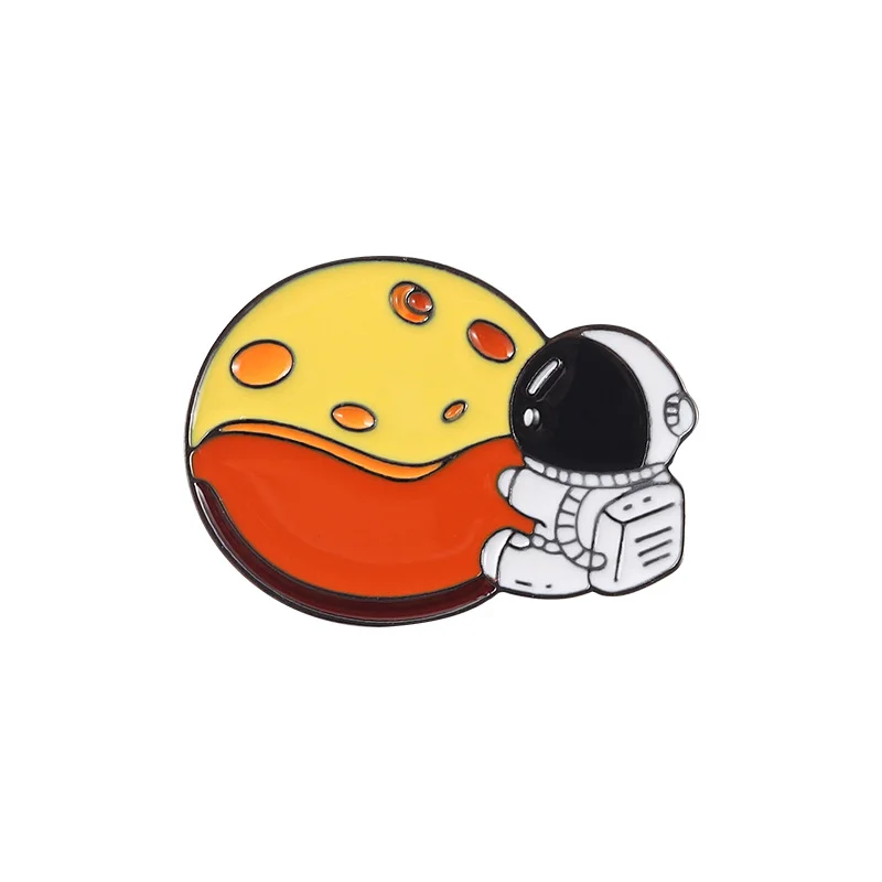 Moon Astronaut Enamel Pin Brooch Moon and Astronaut Metal Badge Corsage Pin Brim Button Wholesale