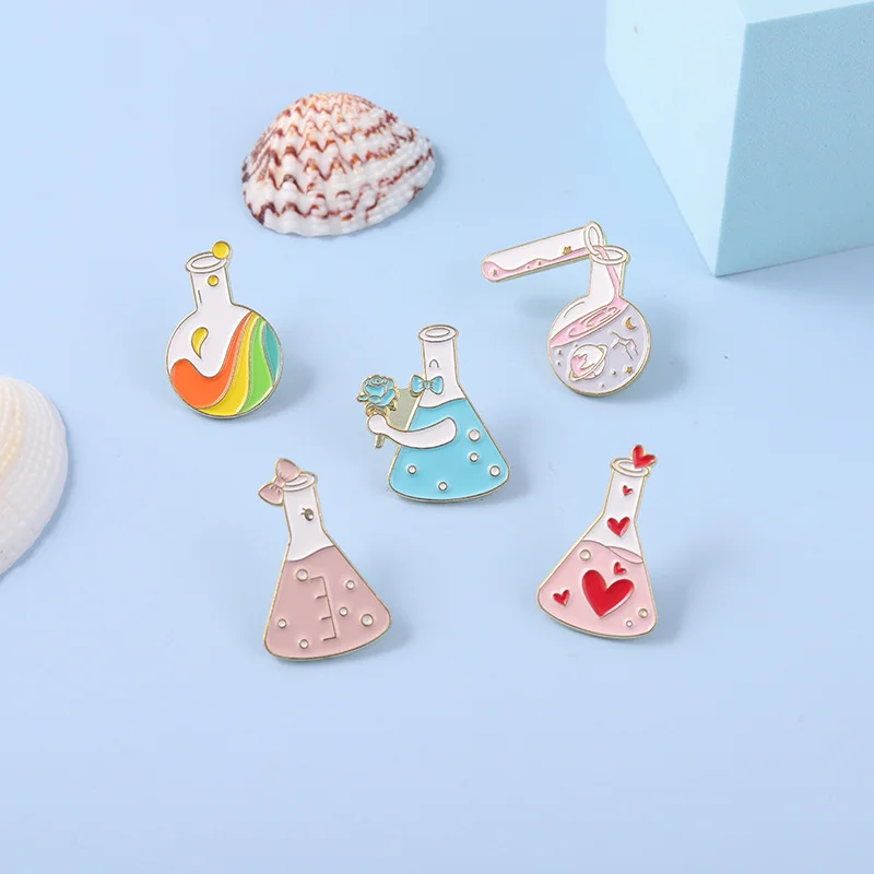 New Love Experiment Bottle Beaker Rainbow Metal Badge Brooch Badge Jewelry Clothing Enamel Pin Brooch Wholesale