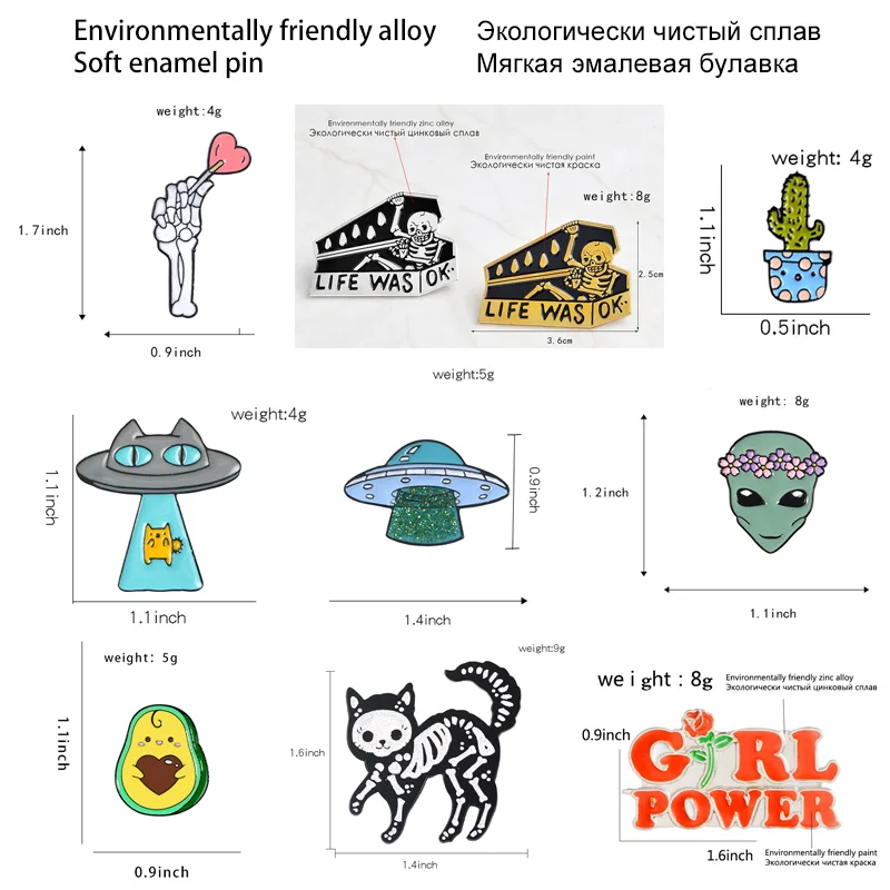 New Skeleton Cat Enamel Lapel Pins Alien Avocado UFO Cute Brooches Badges Fashion Gifts for Friends Wholesale