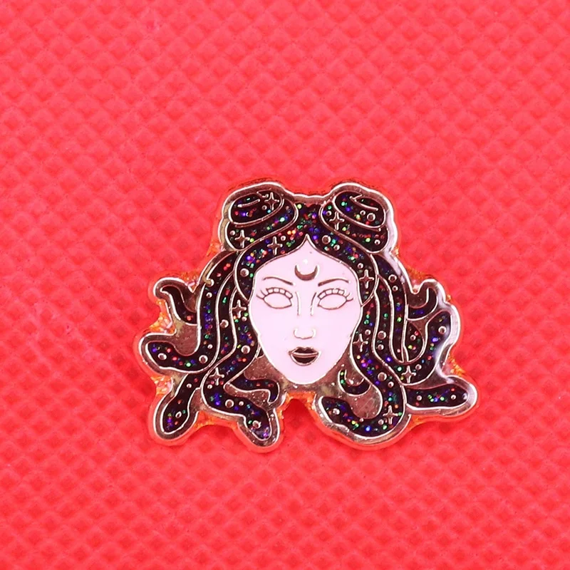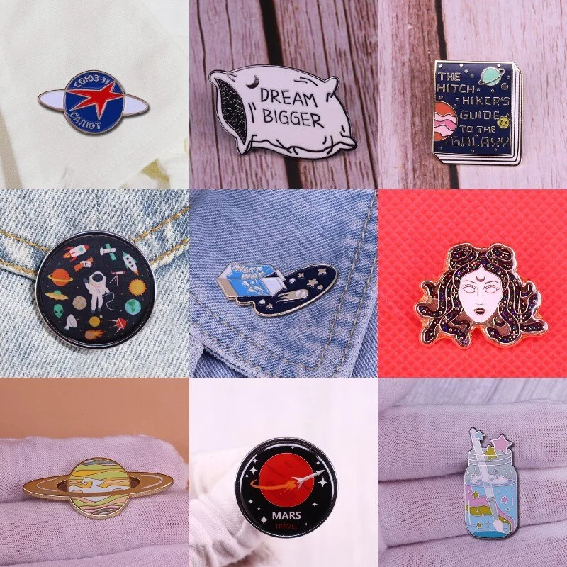 Planet Enamel Pins Pillow Star Cup Planet Moon Snake hair woman Cartoon Brooches Backpack Hat Badge Wholesale