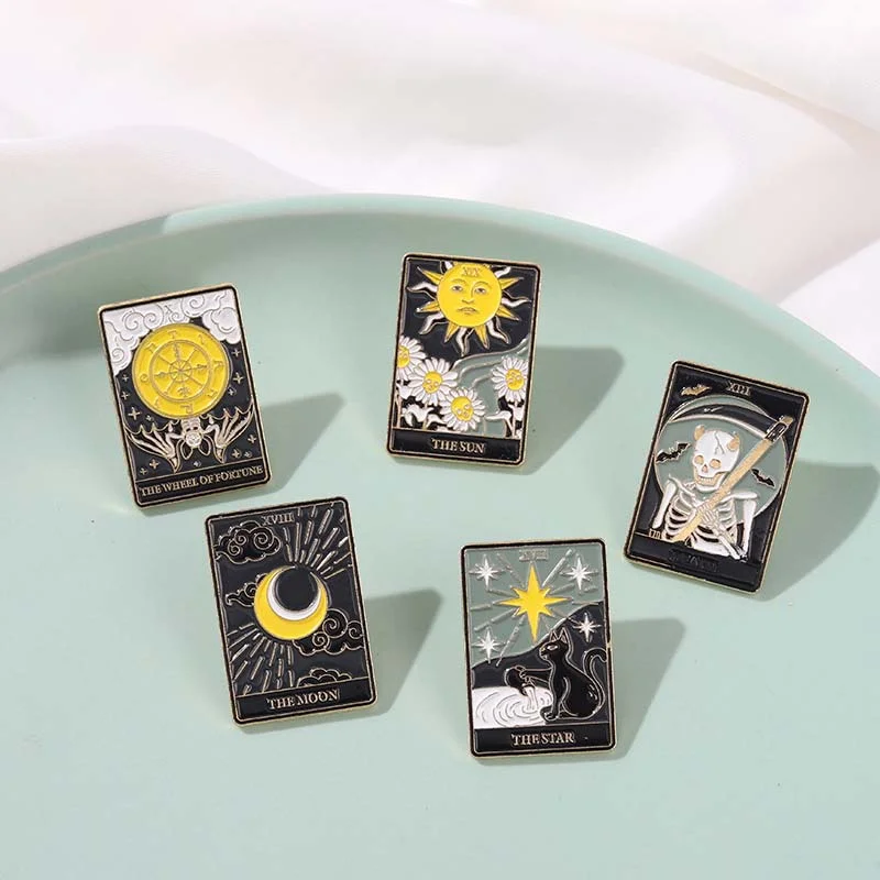 Tarot Brooch Black Skull Badge Moon Sun Badge Pin Sweater Collar Metal Badge