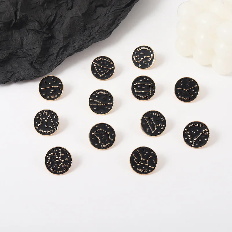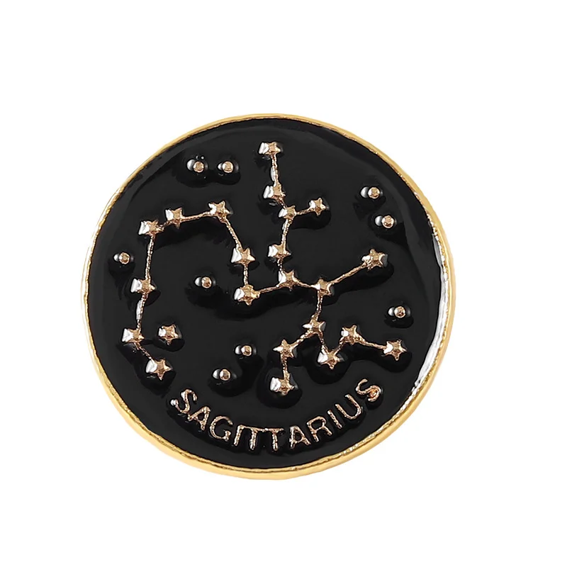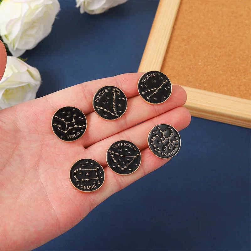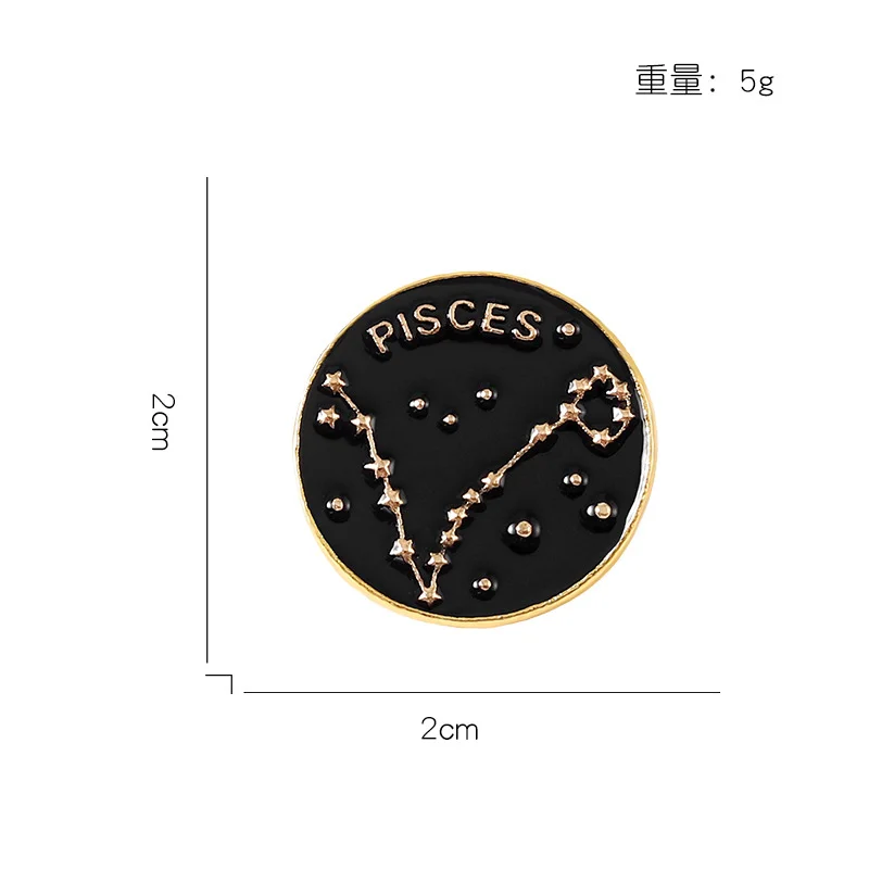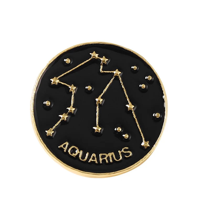 Twelve Planets Aries, Aquarius, Pisces, Scorpio, Sagittarius Enamel Pin Brooch Astrological Constellation Taurus Virgo Aquarius Round Geometric Brooch