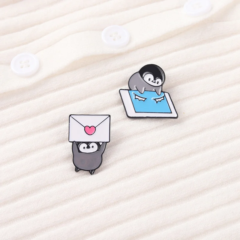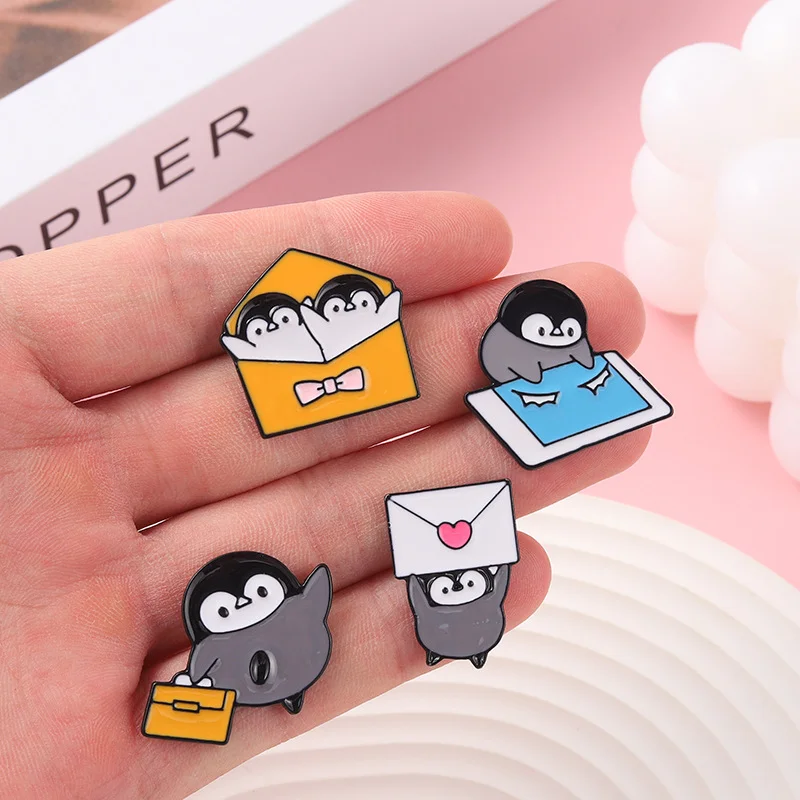 Send Letter Little Penguin Metal Cute Cartoon Badge Cute Furry Penguin Corsage Animal Pins Scarf Button