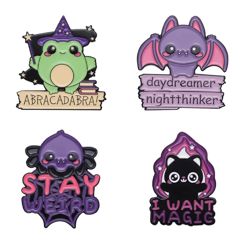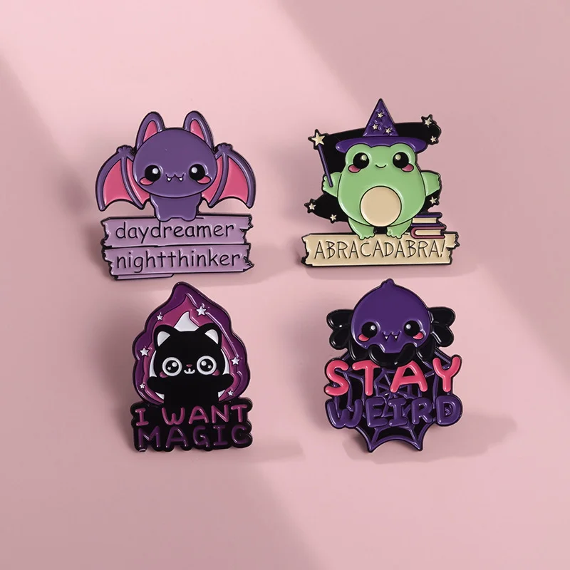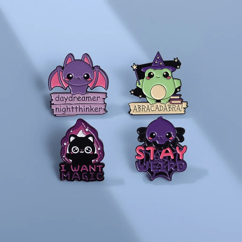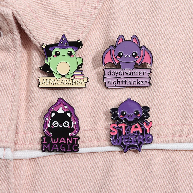 Animal Brooch Frog Bear Demon Purple Bat Cute Cartoon Pattern Clothing Enamel Pin Accessory Corsage Magic Punk Brooch