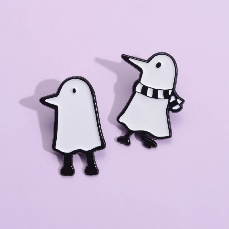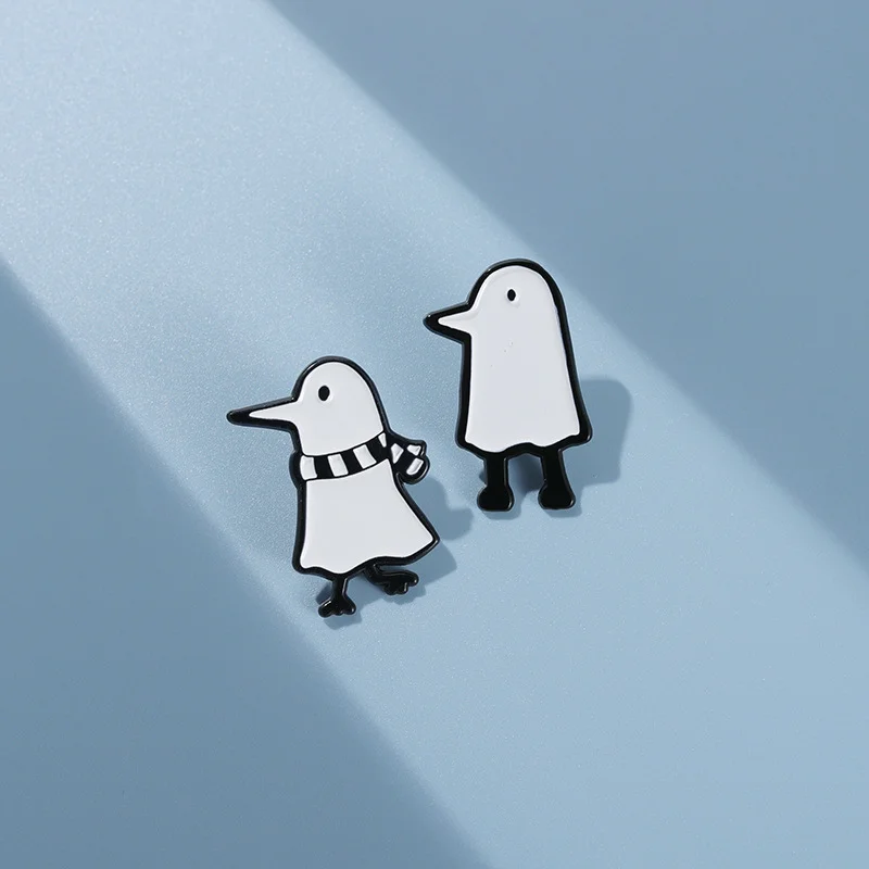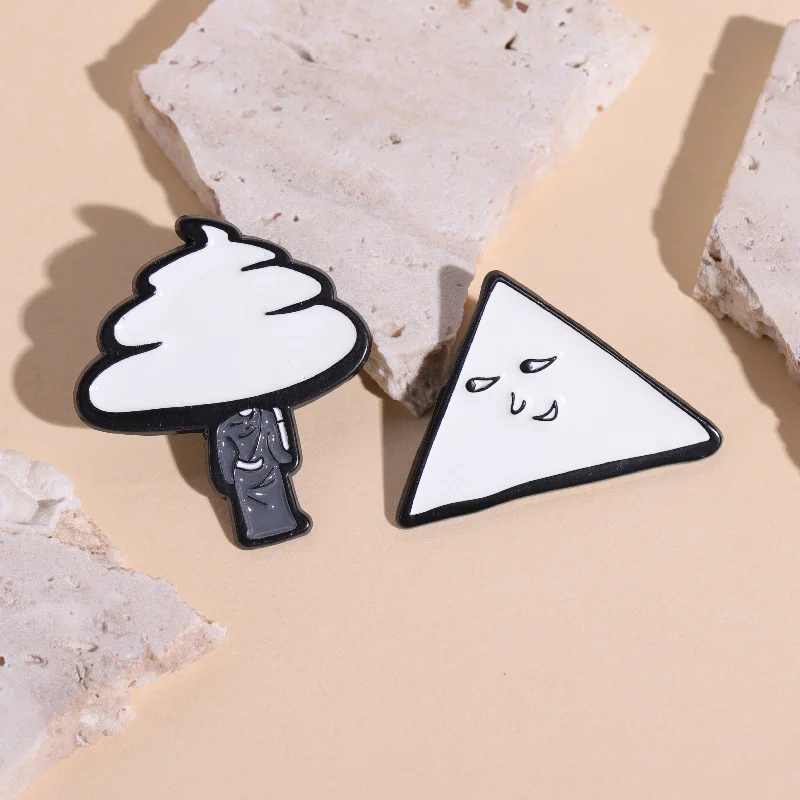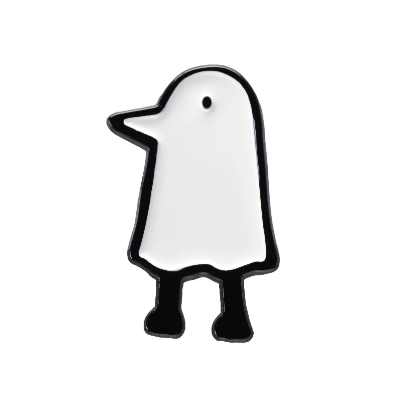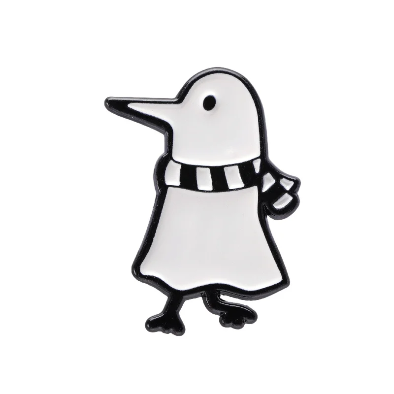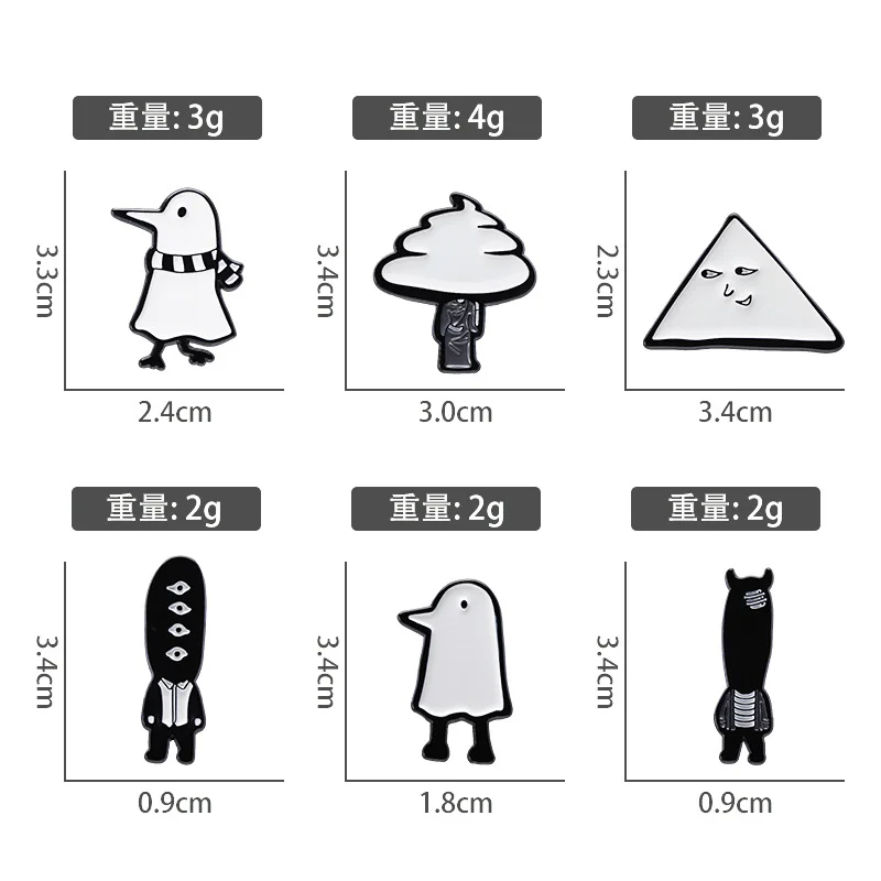 Black and White Villain Brooch Creative Geometric Shape Surrounding Cute Oyster Mushroom Badge Pin White Bird Metal Accessories Clothing