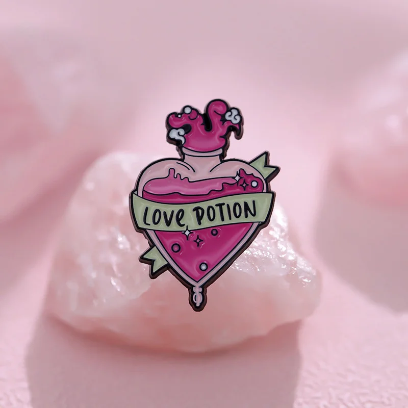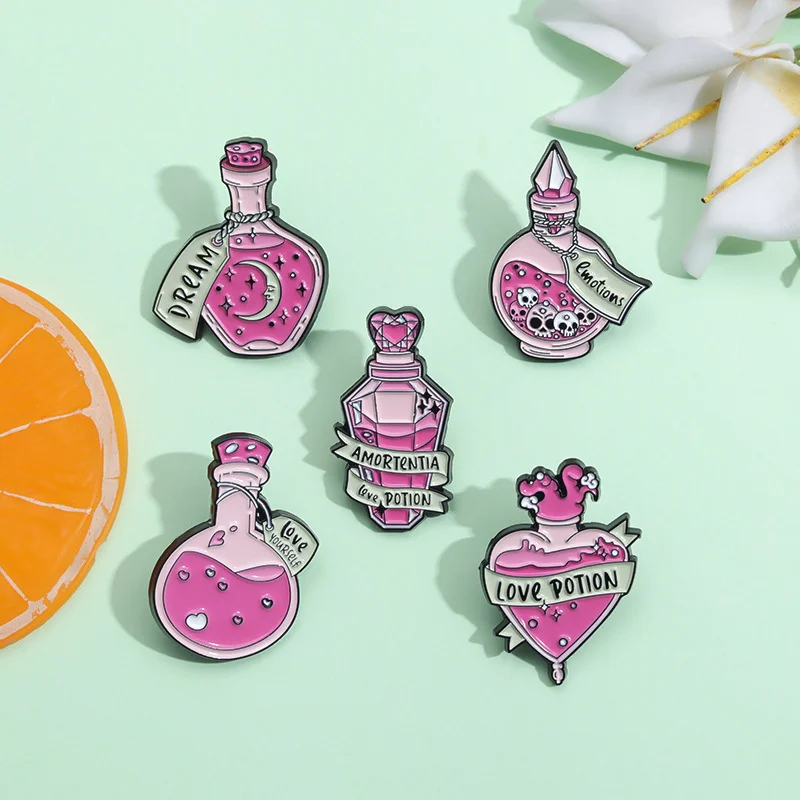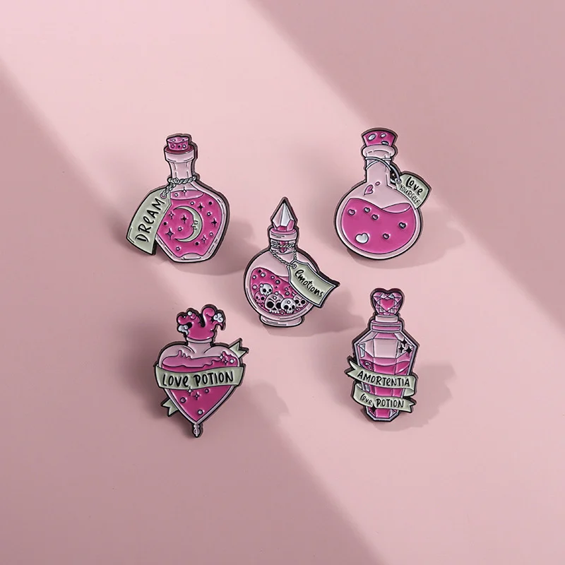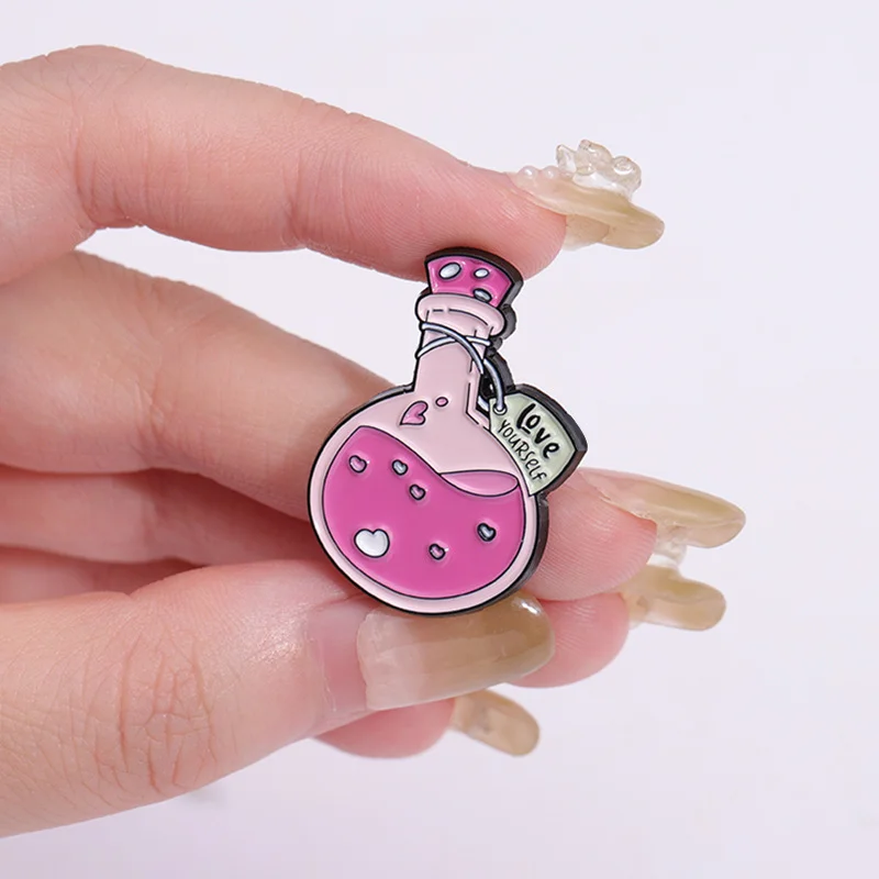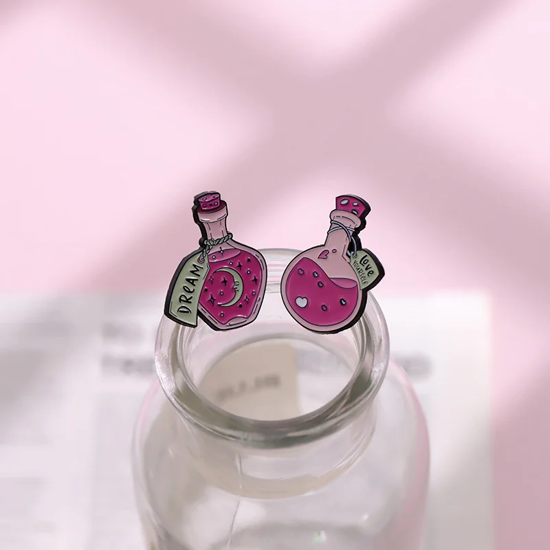 Enamel Brooch Purple Magic Bottle Moon Potion Pink Chemical Witch Punk Cute with Metal Badge