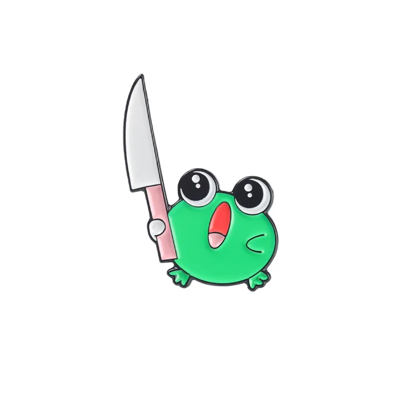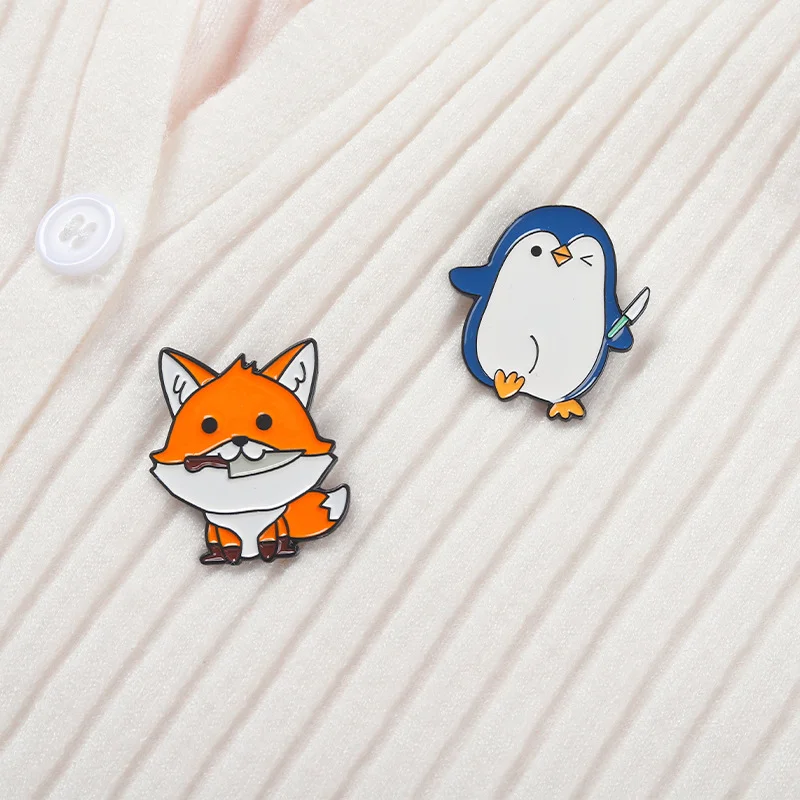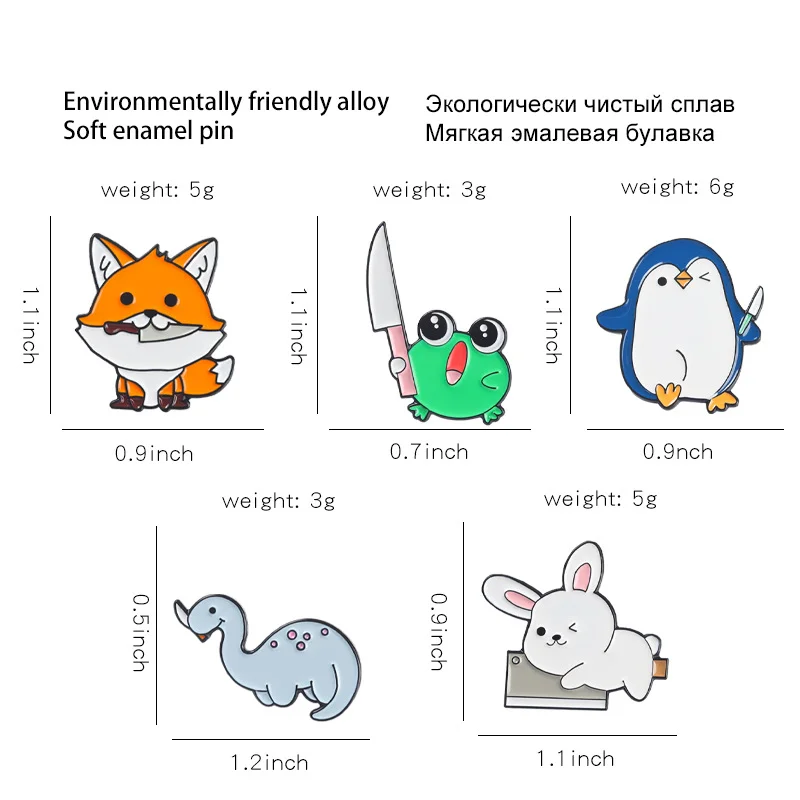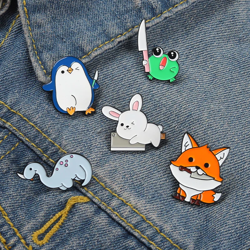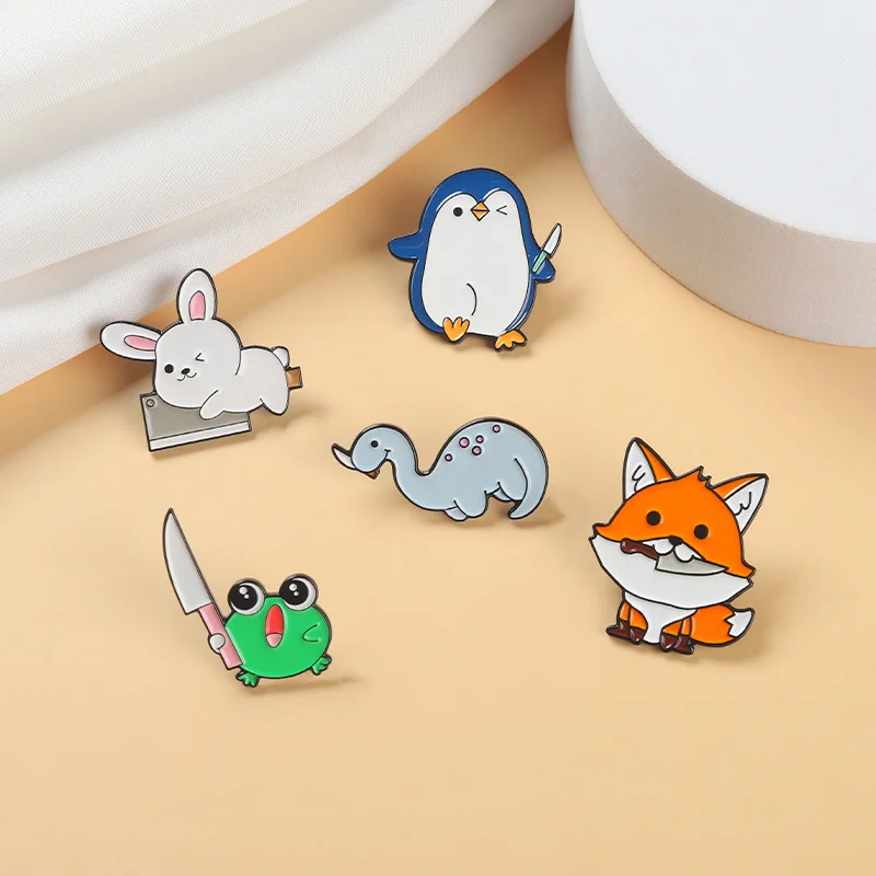 Cartoon Animal Style Enamel Pin Small Animal with Knife, Fox, Rabbit, Penguin, Dinosaur, Frog, Knife, Metal Badge Wholesale