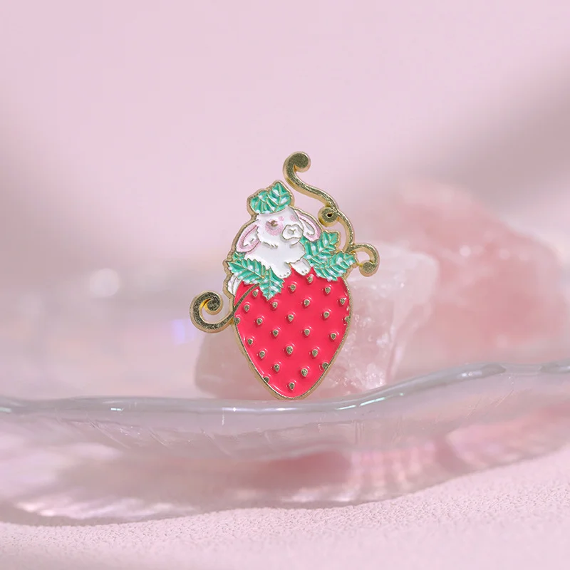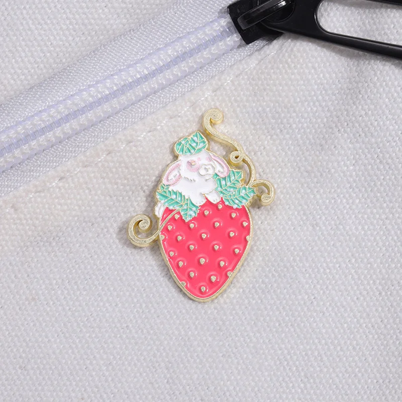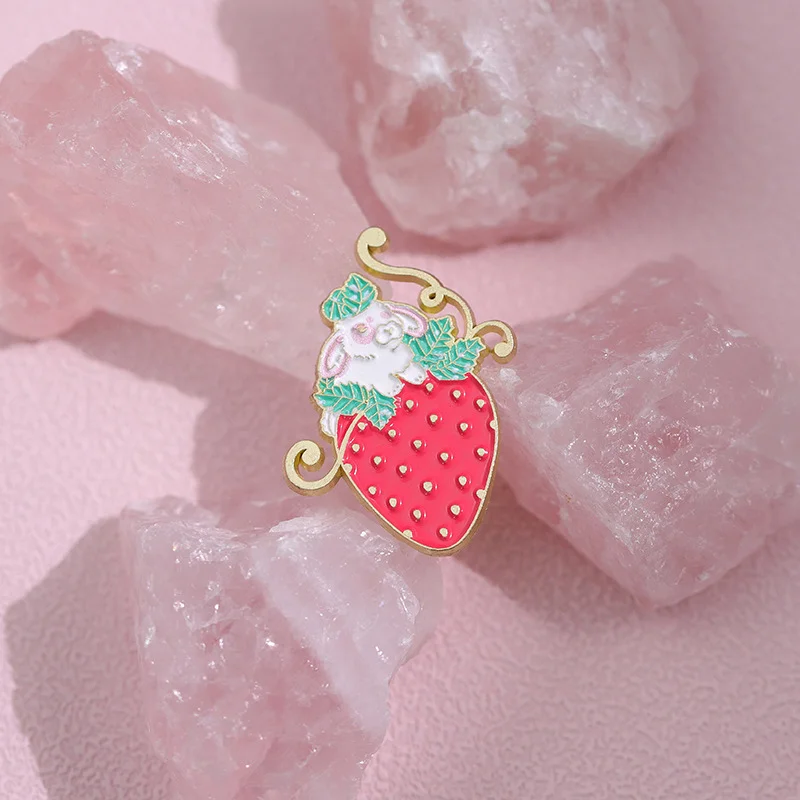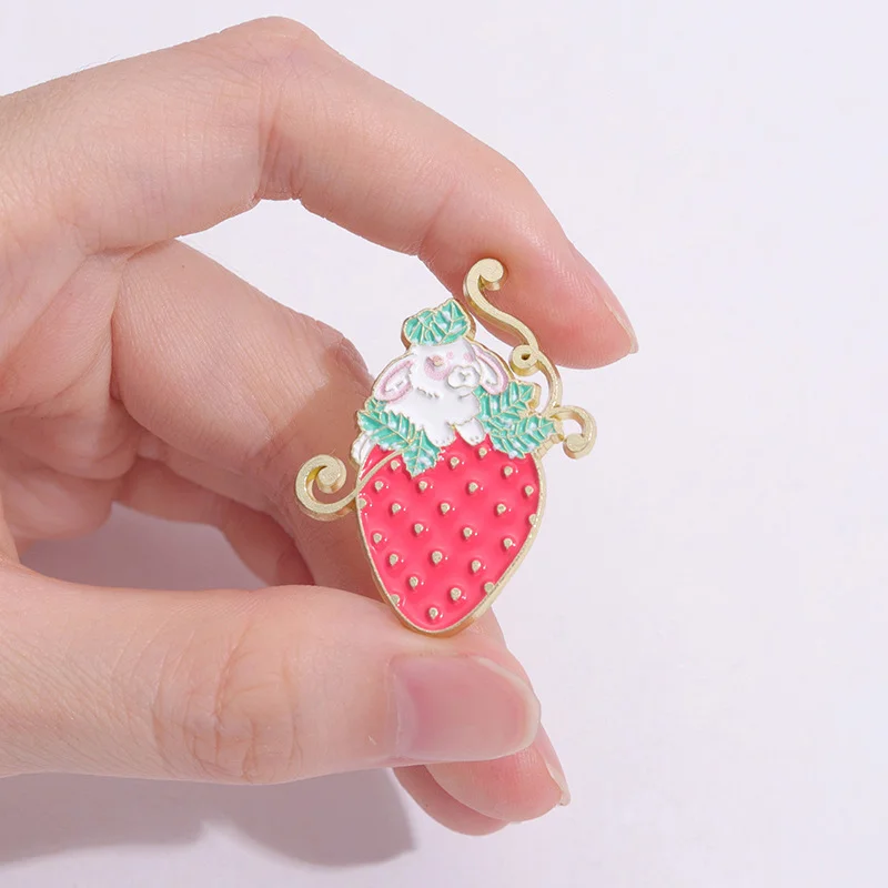 Creative Fruit Rabbit Enamel Pin Brooch Cute Strawberry Rabbit Badge Fruit Animal Metal Badge Accessories Gift