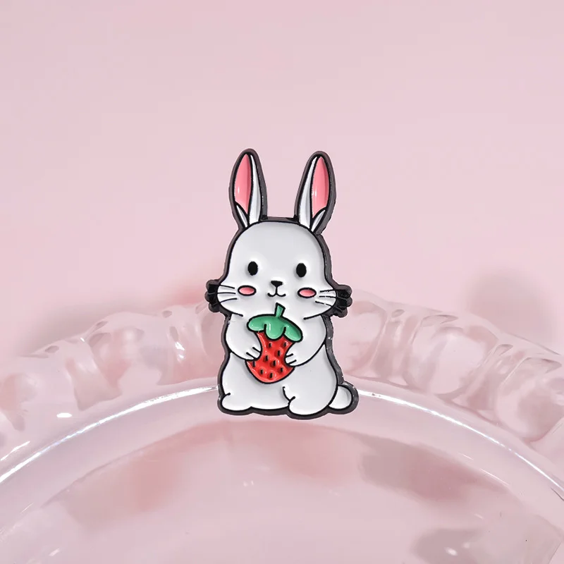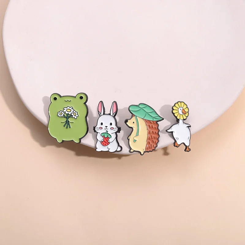 Cute Cartoon Brooch Animal Hedgehog Rabbit Strawberry Frog Goose Duck Lapel Pin Clothing Accessories Metal Badge