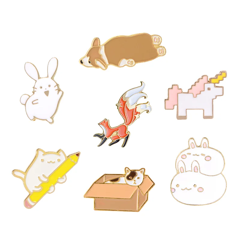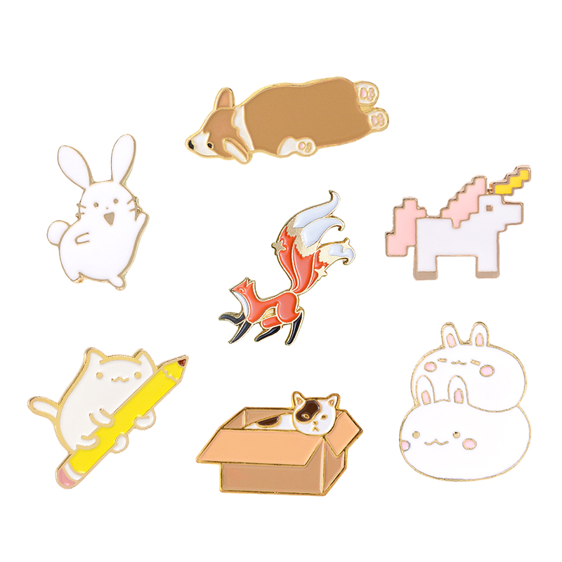 Favorite Animals Enamel Pin Lazy Corgi Nine Tailed Fox Bunny Cat Brooch Lapel Pin Cartoon Badge Jewelry Gift Kids Girl Wholesale
