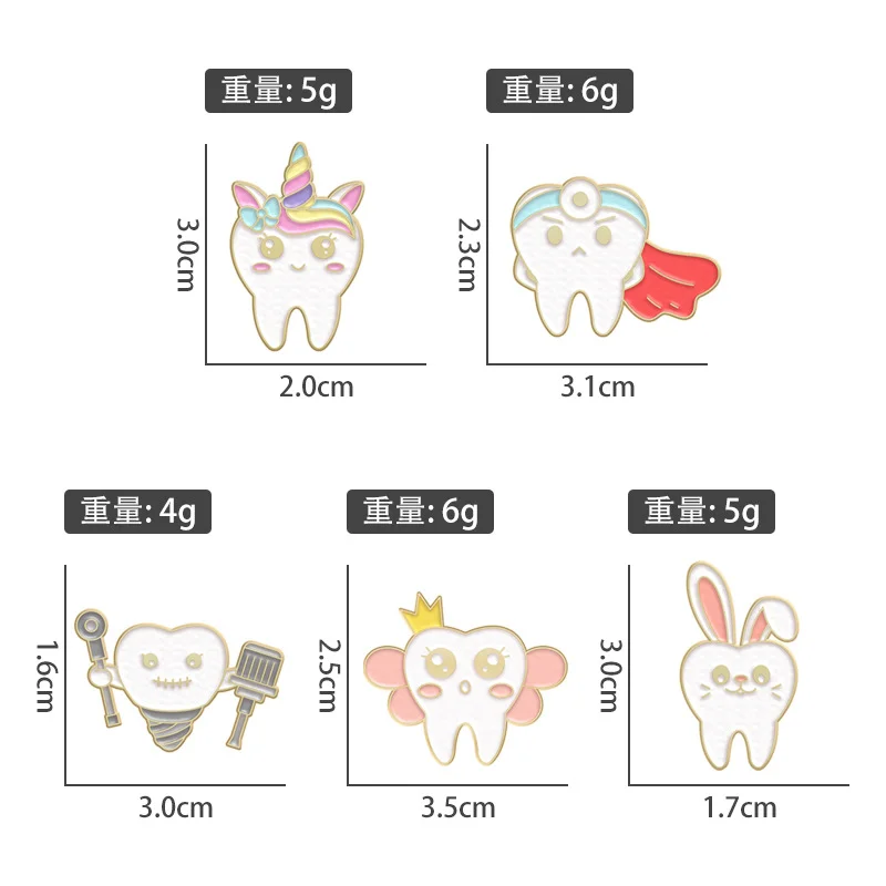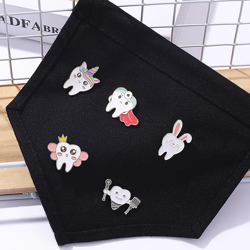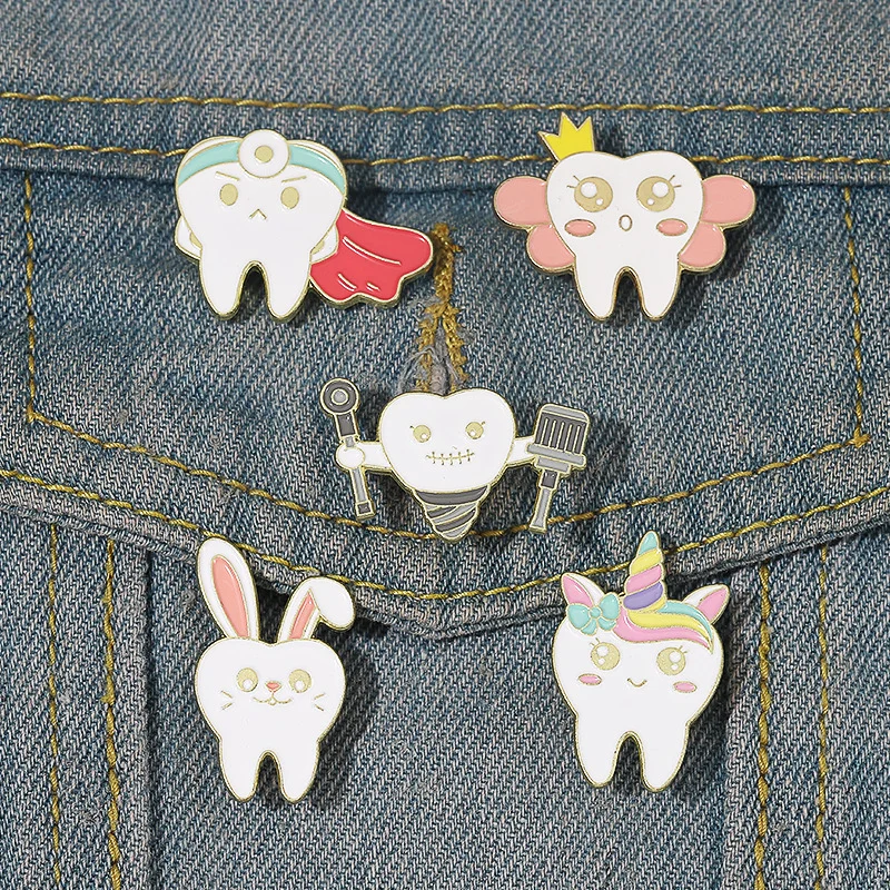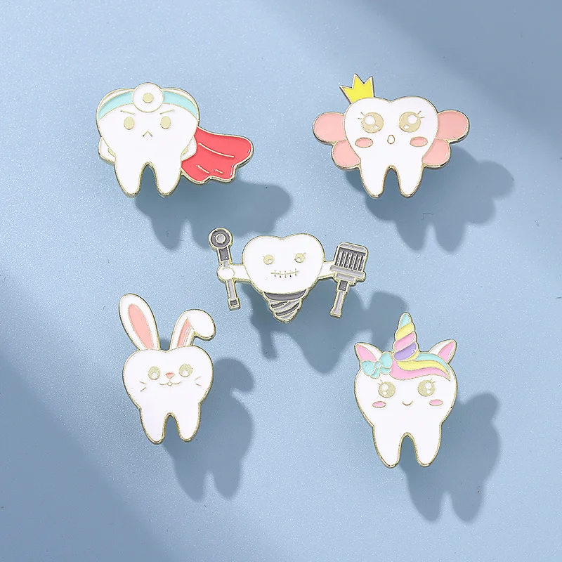 Funny Creative Tooth Care Funny Cartoon Medical Pin Toothbrush Toothpaste Unicorn Superman Princess Rabbit Tooth Badge Wholesale