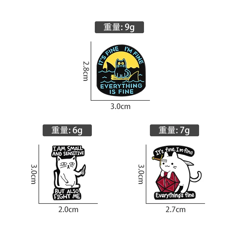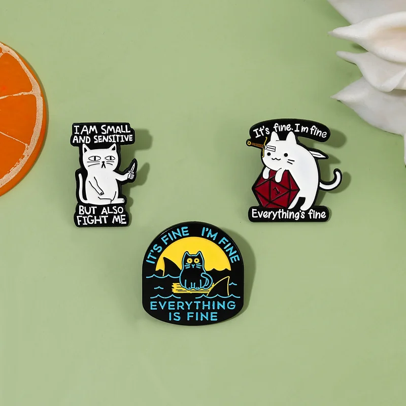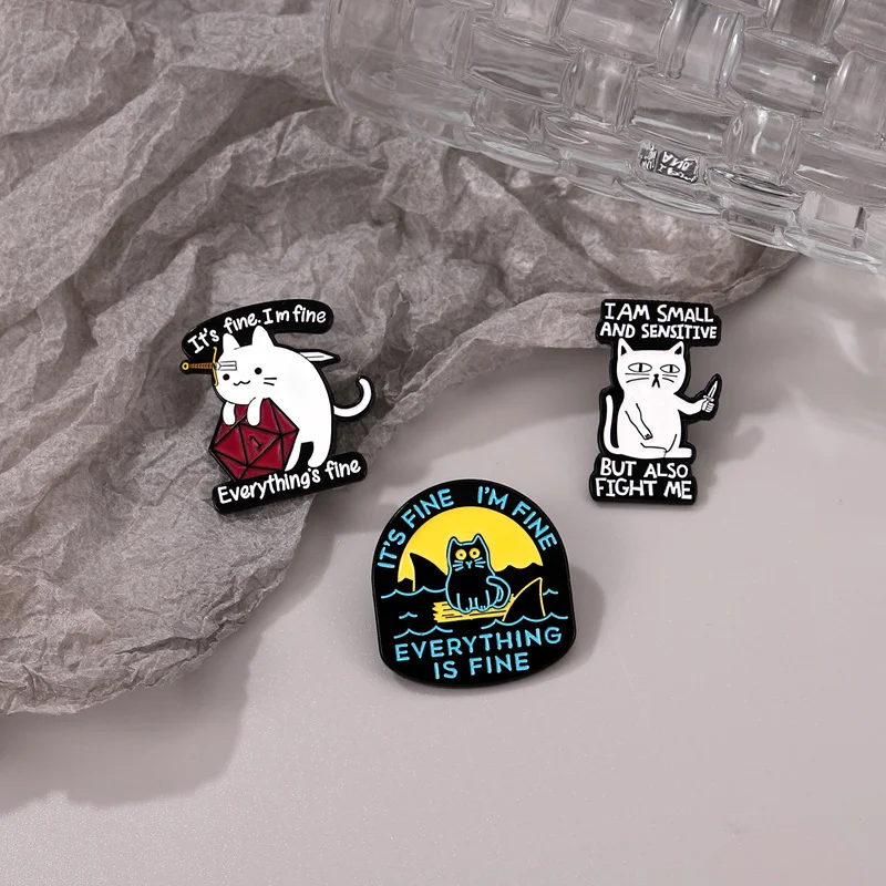 12 Sided Dice Cat Dagger IT'S FINE.I'M FINE Enamel Pin Brooch Clothes Bags Animal Accessories Metal Badge