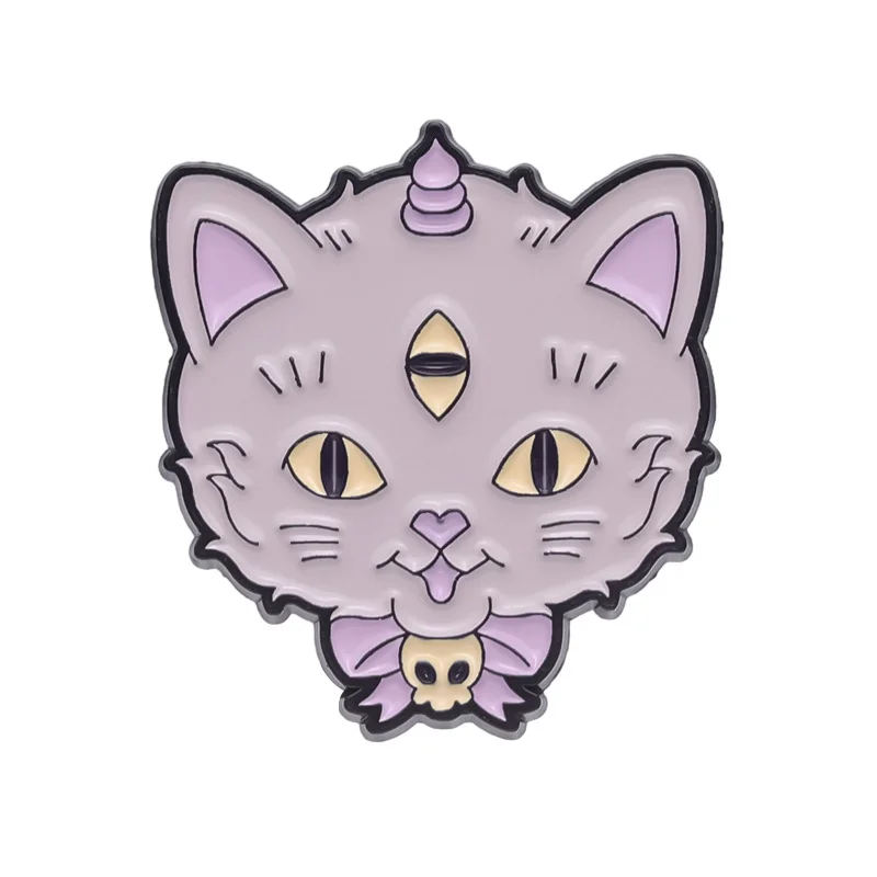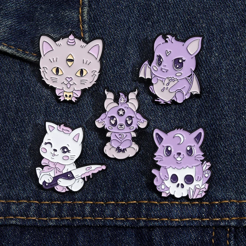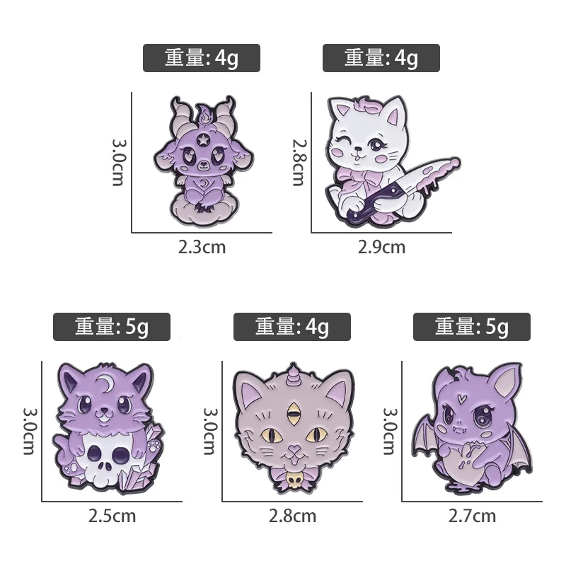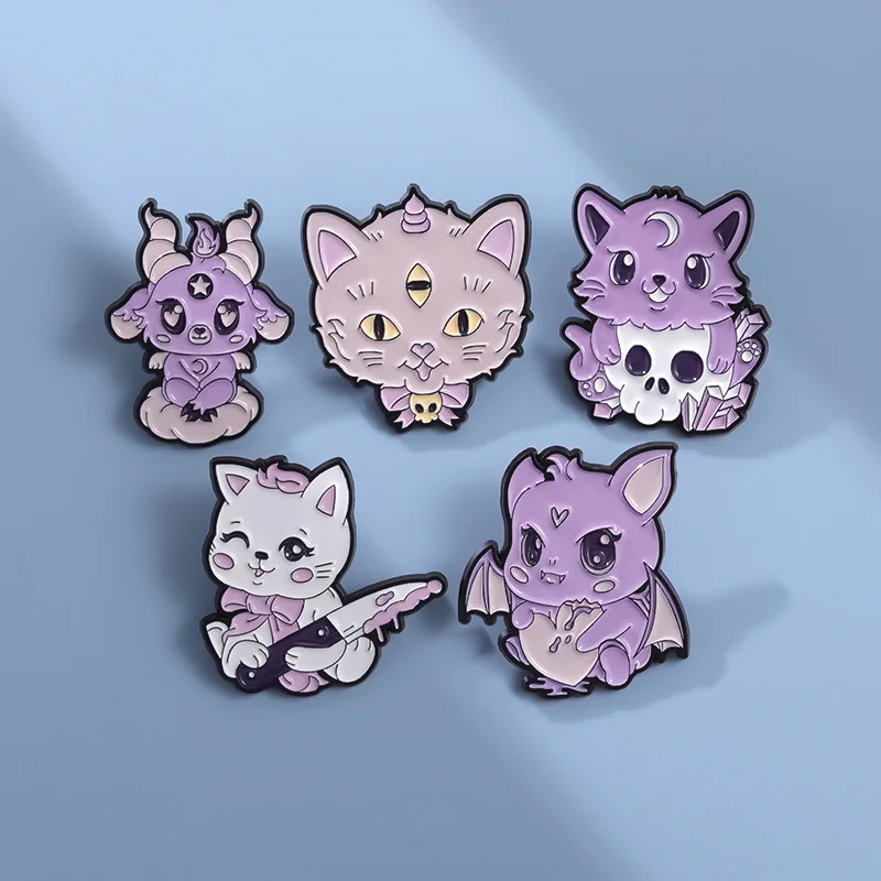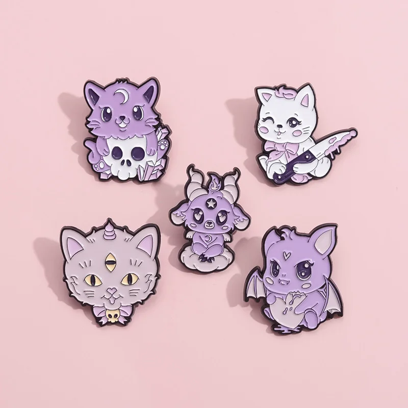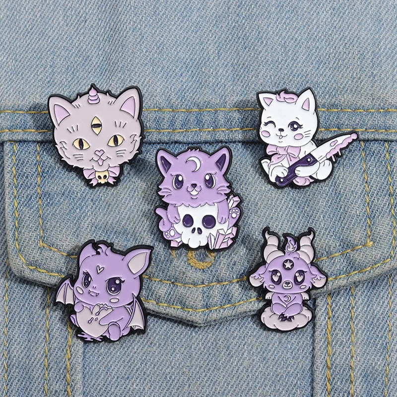 Fun Purple Devil Kitten Calf Enamel Pin Brooch Piece Badge Clothing Accessories Cute Bat Skeleton Animals Cute Pets Magic Factory Wholesale
