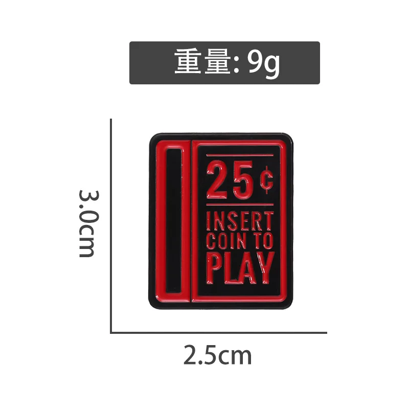 25 INSERT COIN TO PLAY Red Metal Enamel Pin Brooch Clothing Accessories Collar Pin Brooch Black Dark Exquisite Gift Badge Wholesale