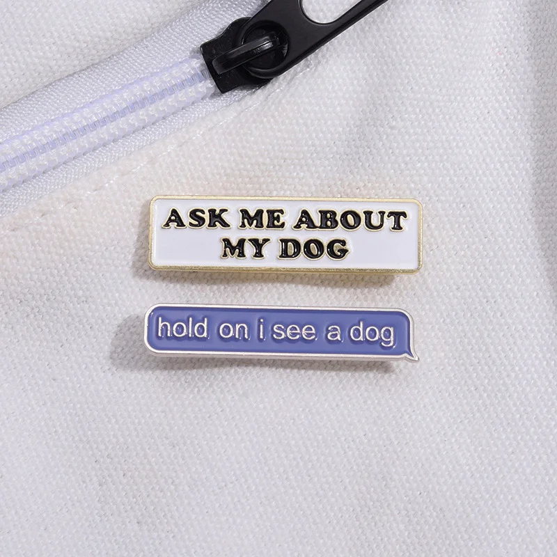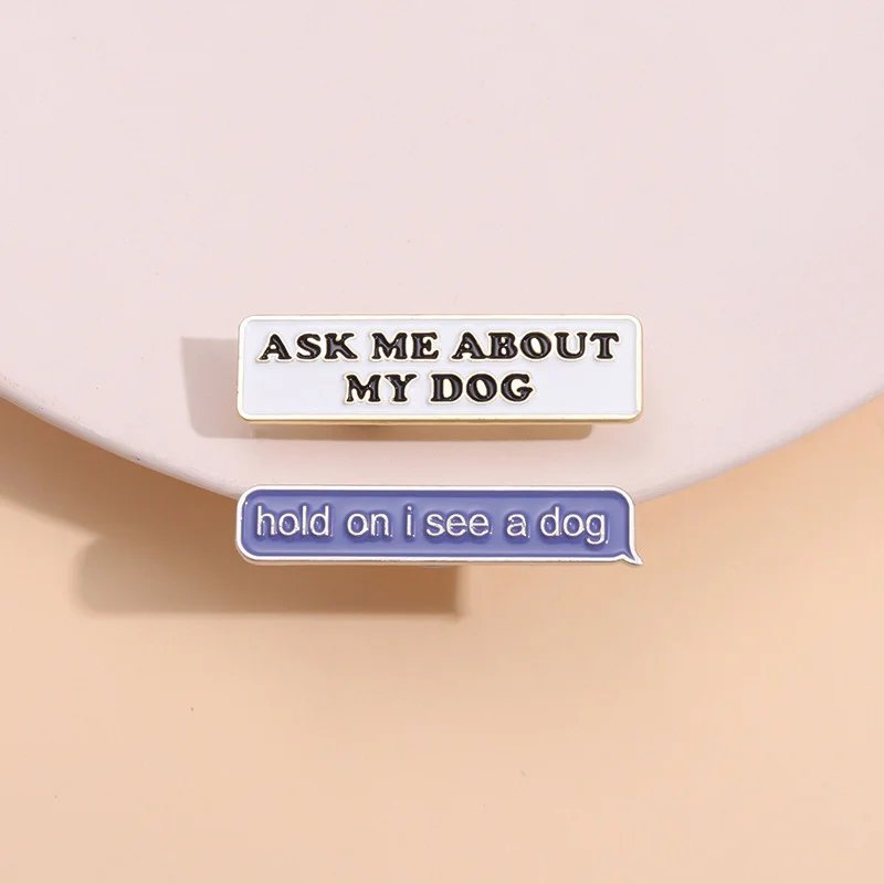 Funny Sentences about Brooches in English Hold on I See A Dog Enamel Pin Fun Decorative Geometric Metal Badge