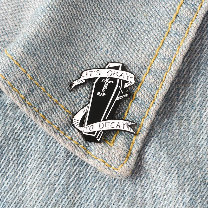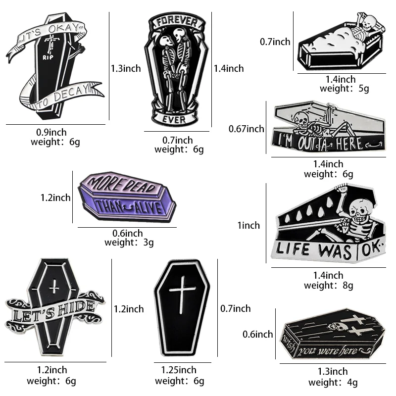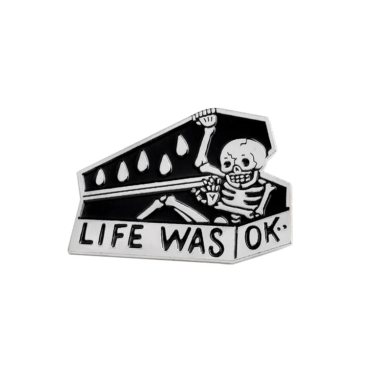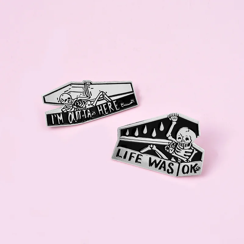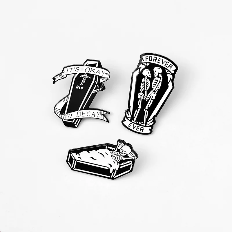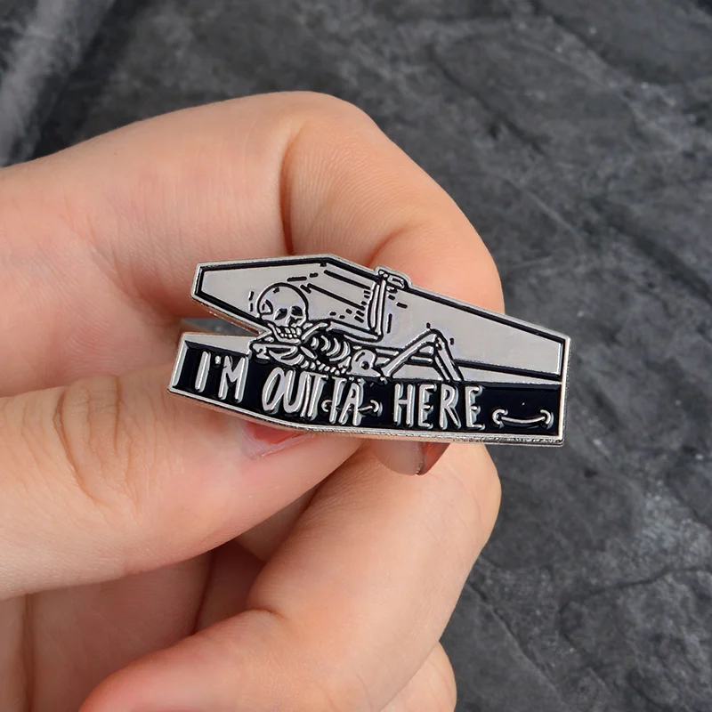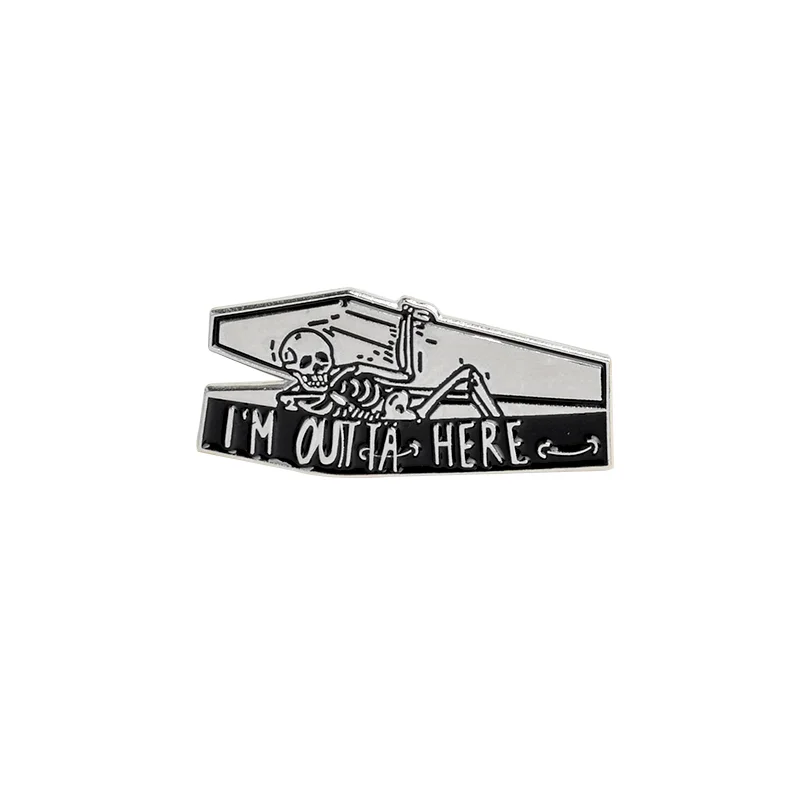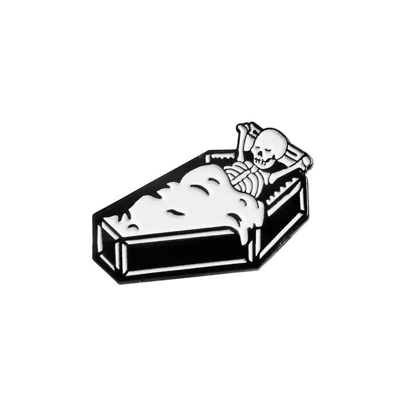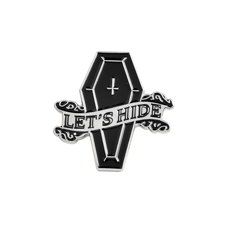 Let's Hide Skeleton Enamel Pin Custom Stay Coffin Brooch Jeans Shirt Badge for Bag Lapel Dark Halloween Jewelry Gift Friend