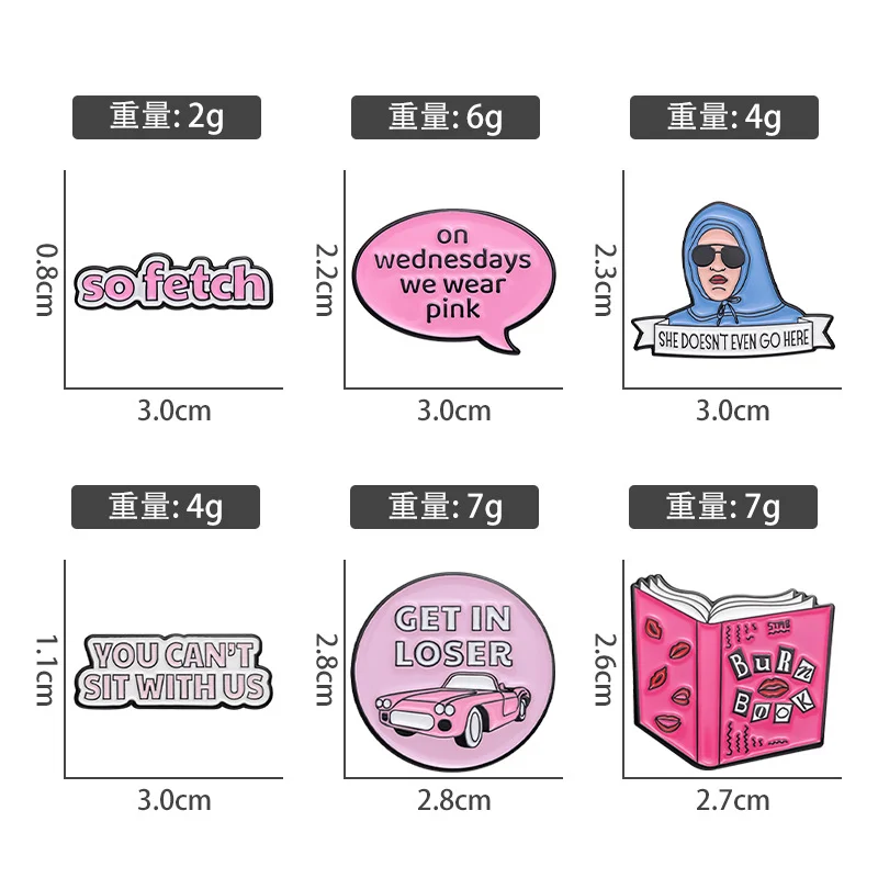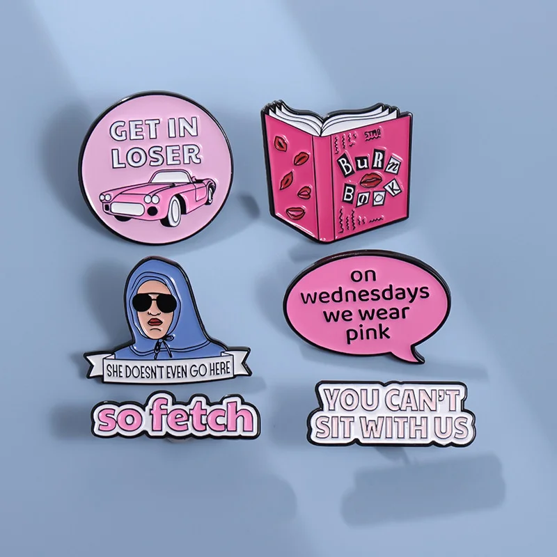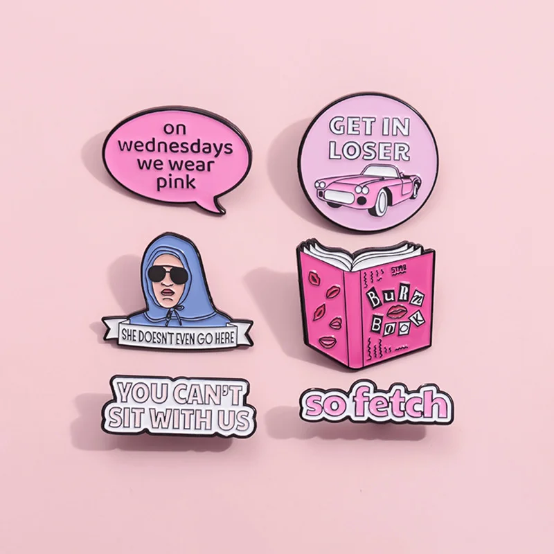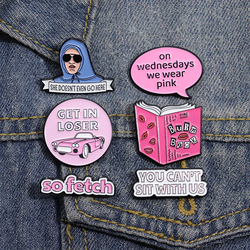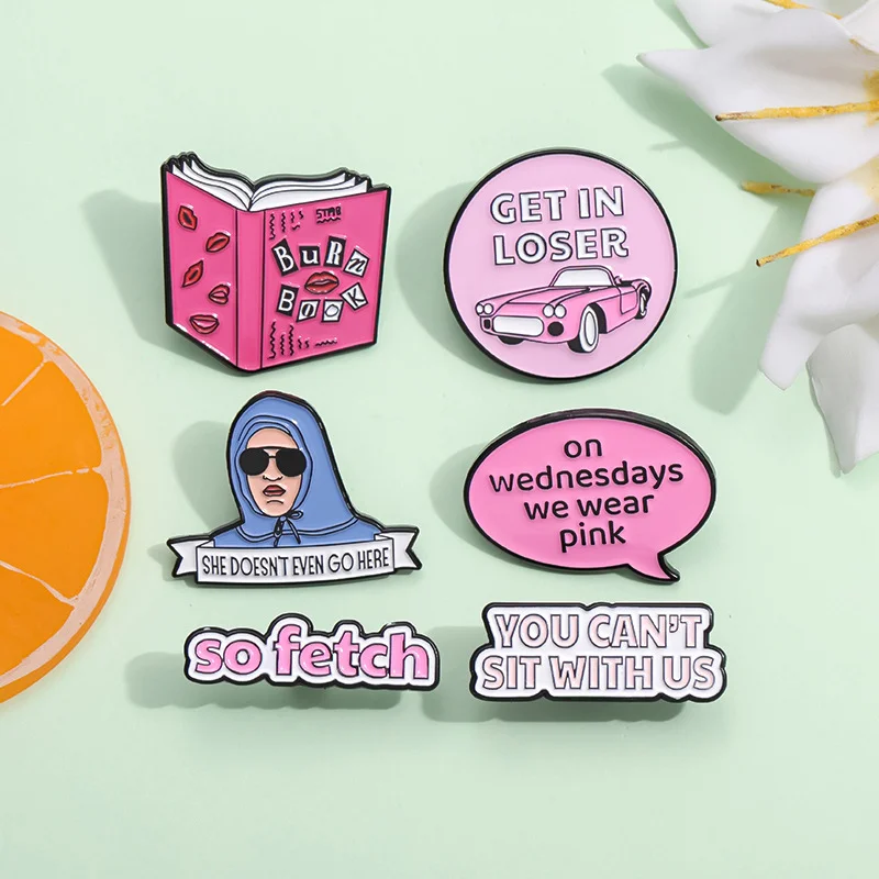 YOU CAN'T SIT WITH US Funny Pink Girly Book Car Enamel Pin Metal Badge Clothing Accessories Wholesale