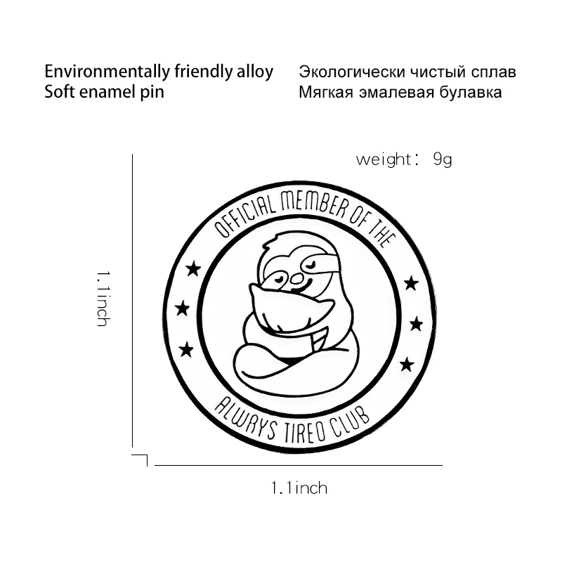 I'm So Tired , I Need A Nap Soft Enamel Pin Round Sloth Sheep Dog Book Brooches Gift for Student Worker Friends Badges Wholesale