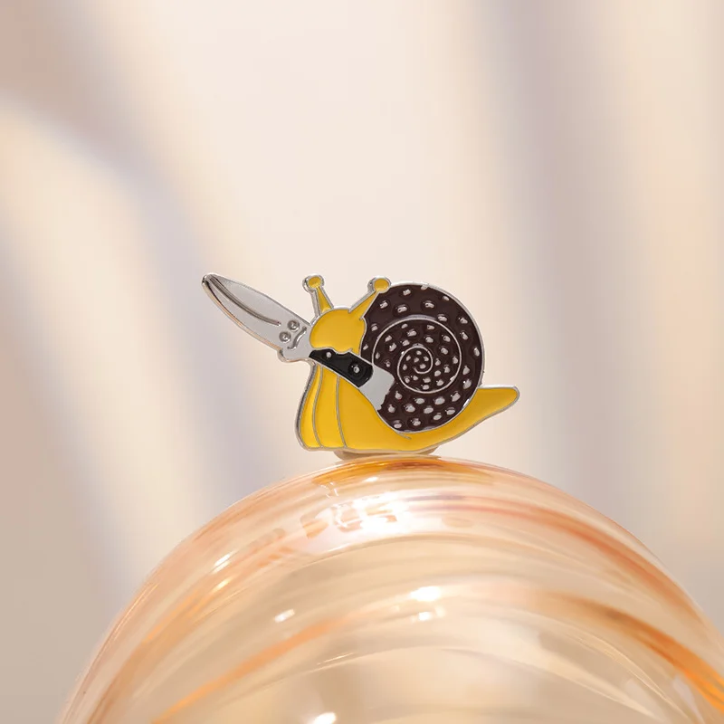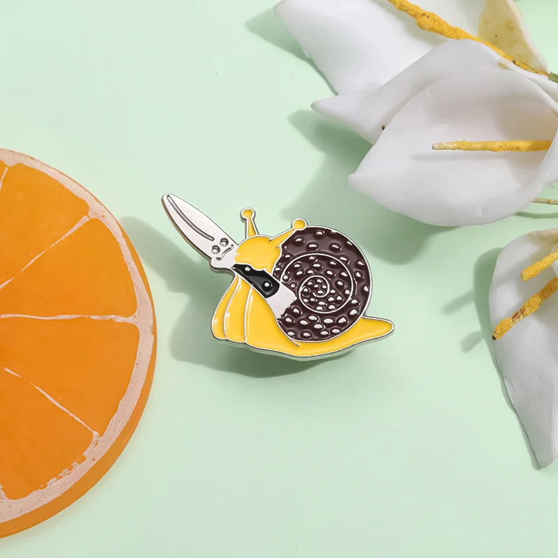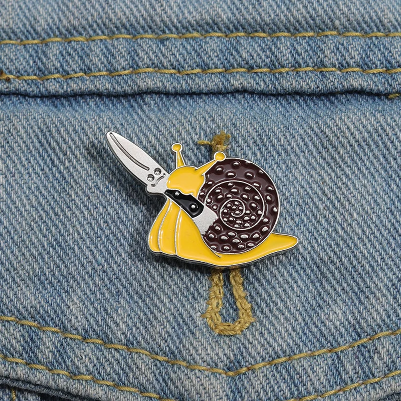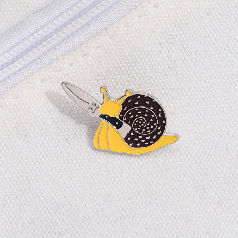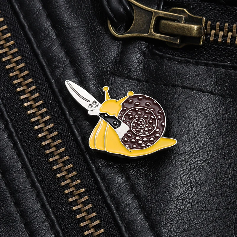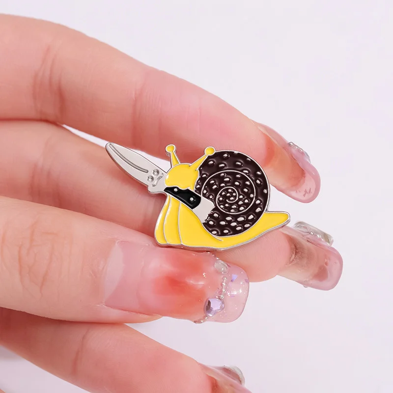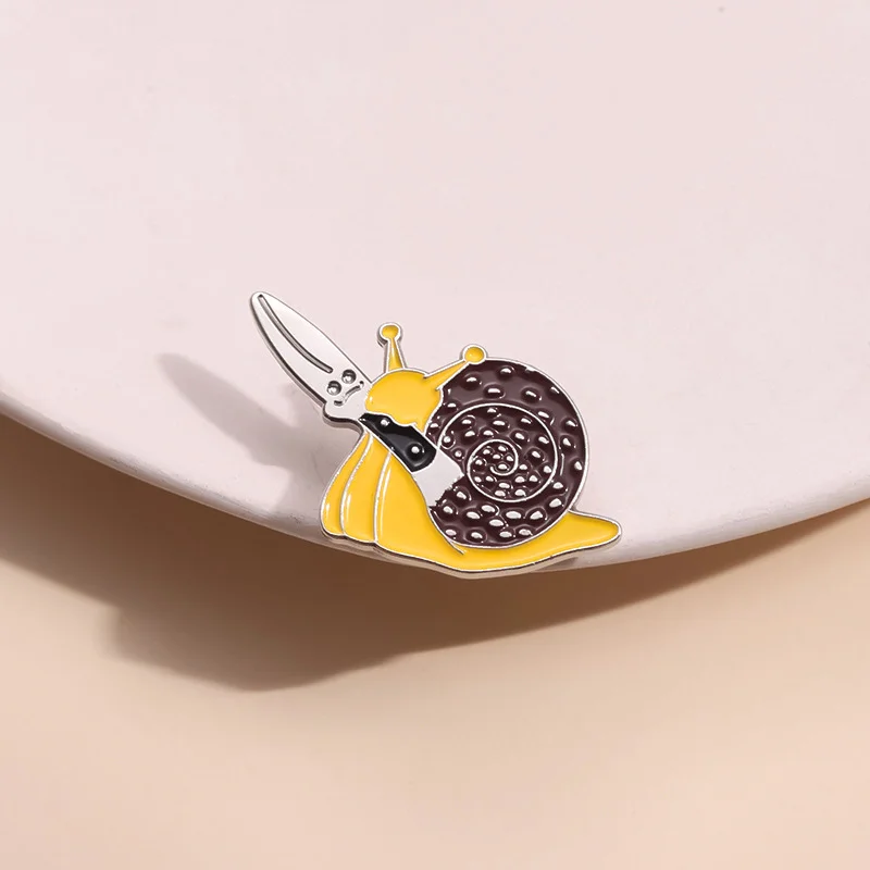 Cute Knife-wielding Snail Animal Enamel Pin Brooch Clothing Accessories Lapel Pin Commemorative Metal Badge Factory Wholesale