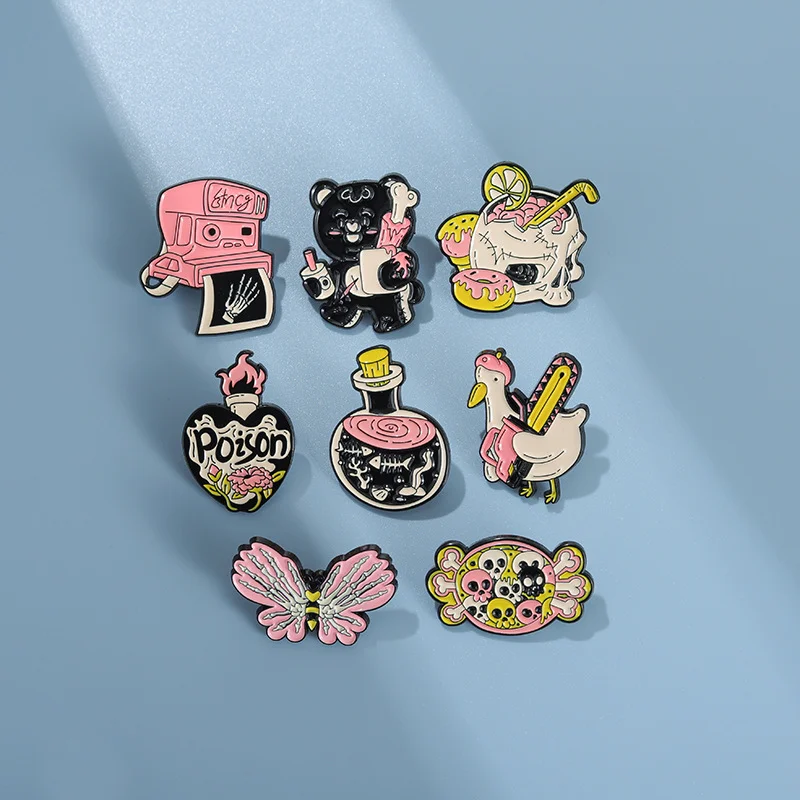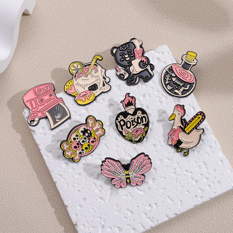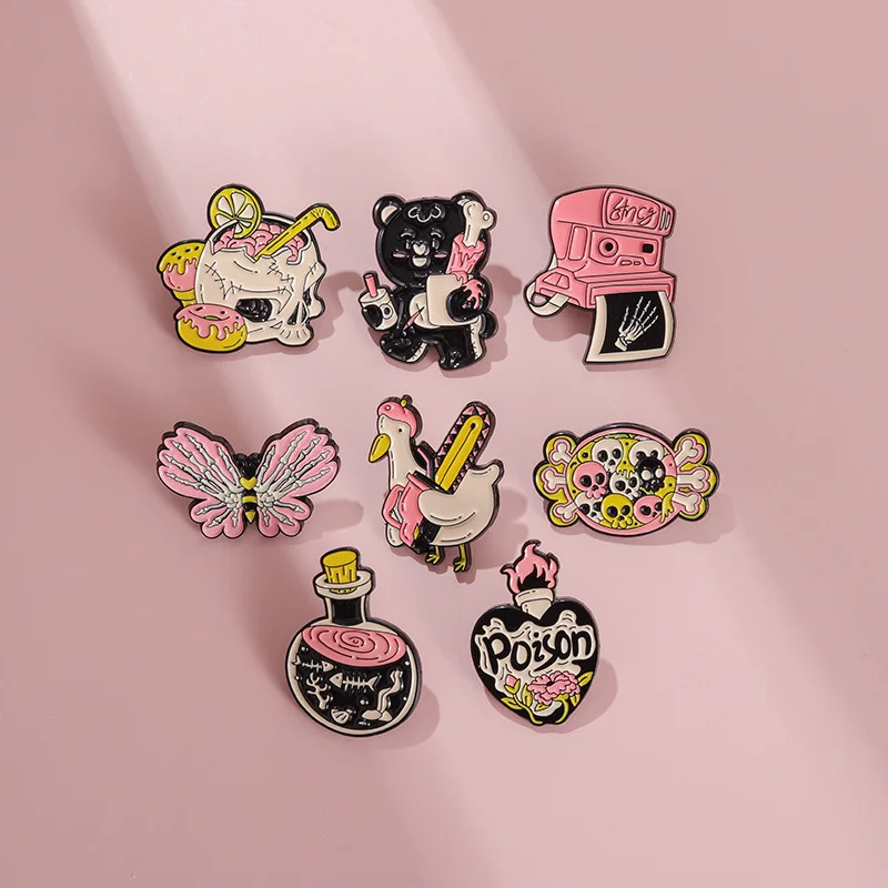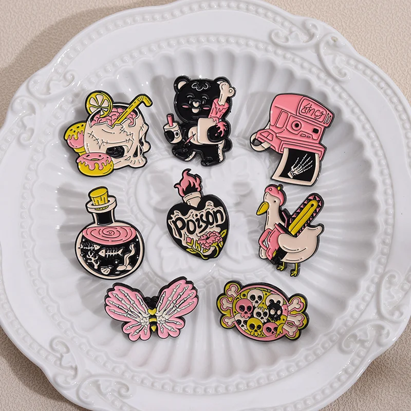 Cartoon Pink Chainsaw Duck Bear Camera Skull Bee Candy Magic Potion Creative Shape Design Personality Fashion All Matches Accessories Enamel Pin Badge