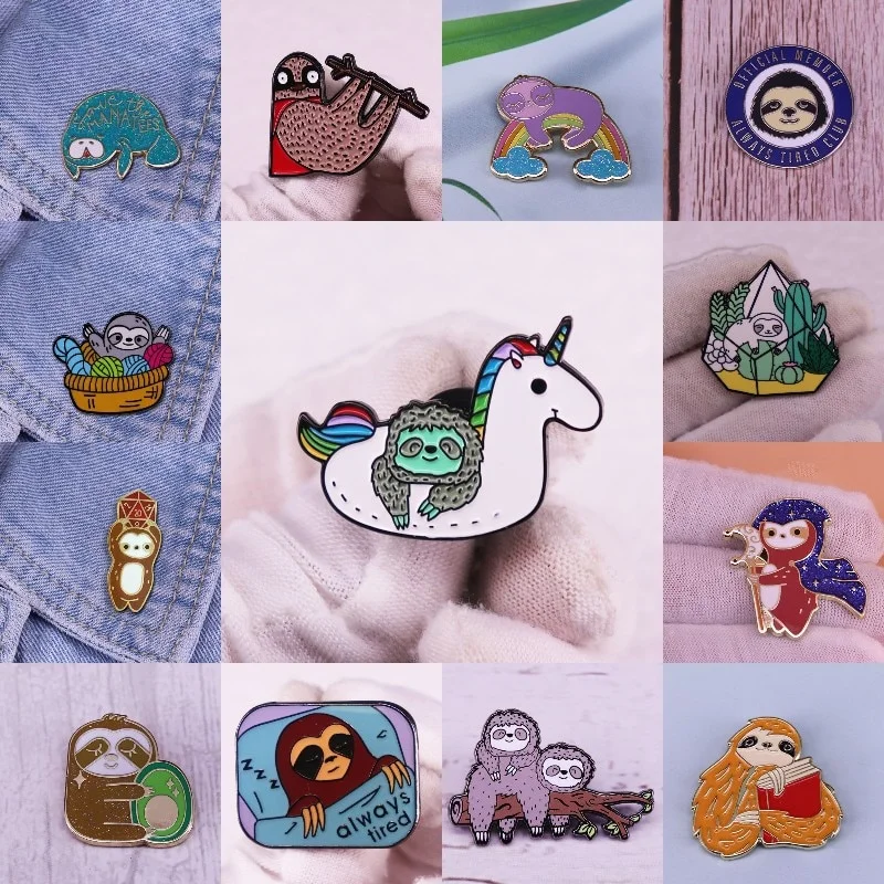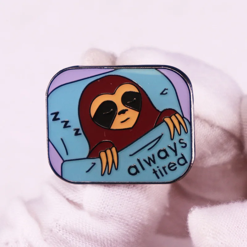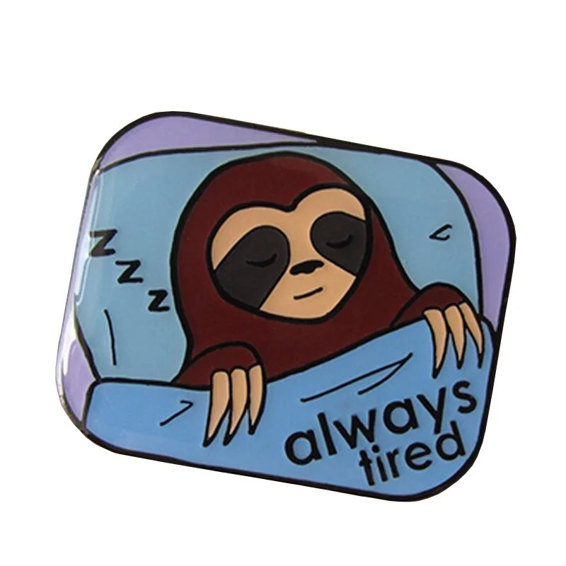 Always Tired Cute Sleep Sloth Enamel Pin Women Men Lapel Brooch Backpack Denim Jacket Decoration Jewelry Gift
