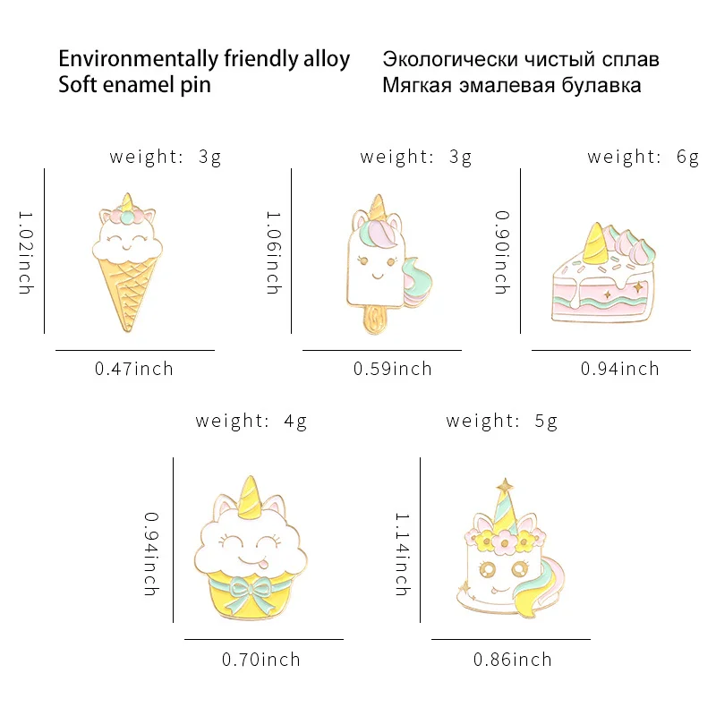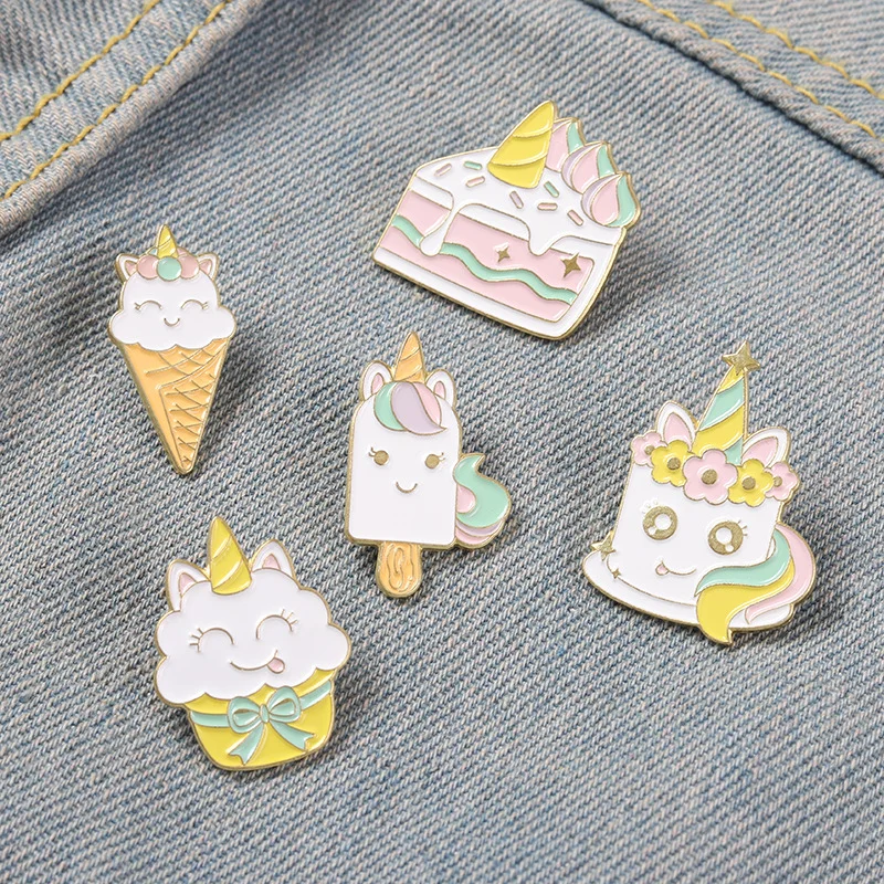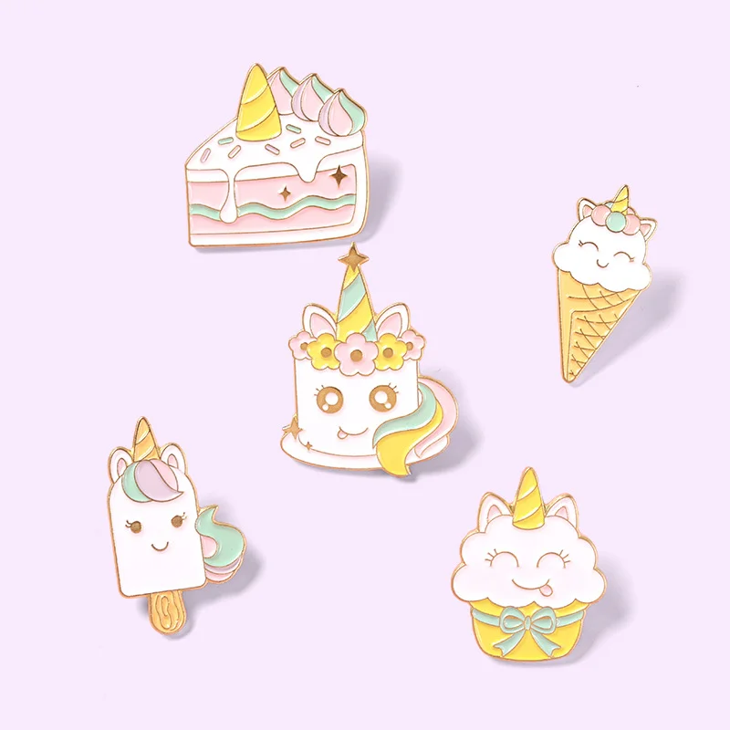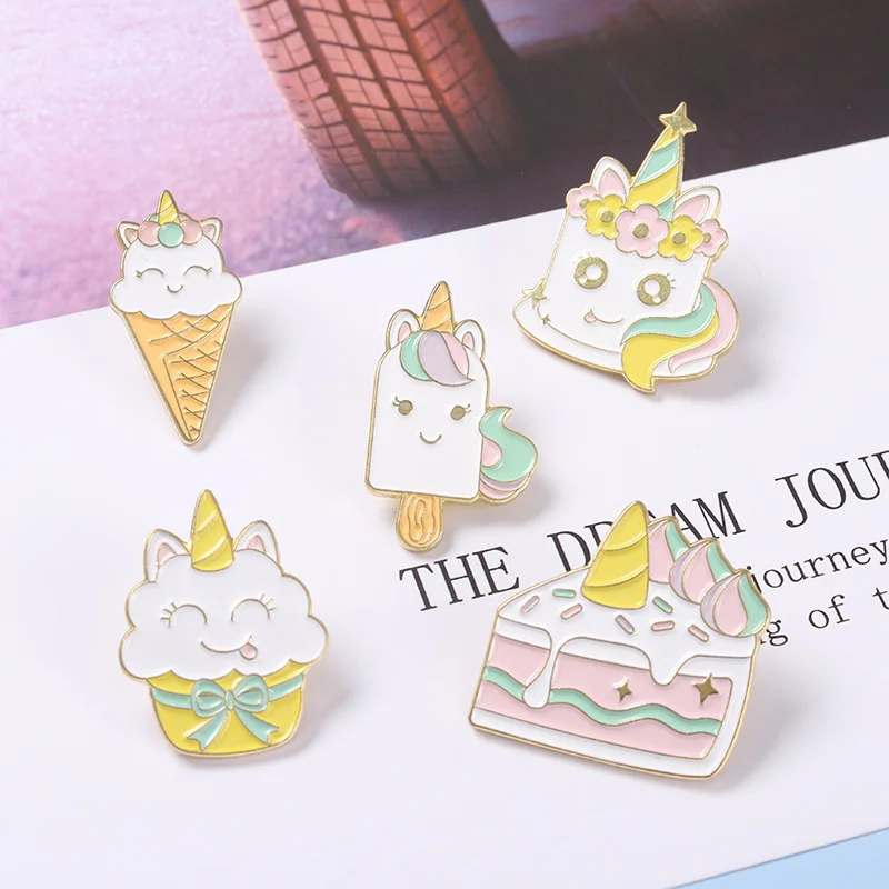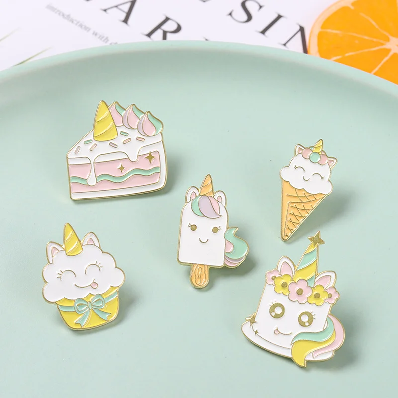 Girls Sweet and Cute Cake Brooch Metal Enamel Pin Badge Ice Cream Dessert Brooch Unicorn Wholesale