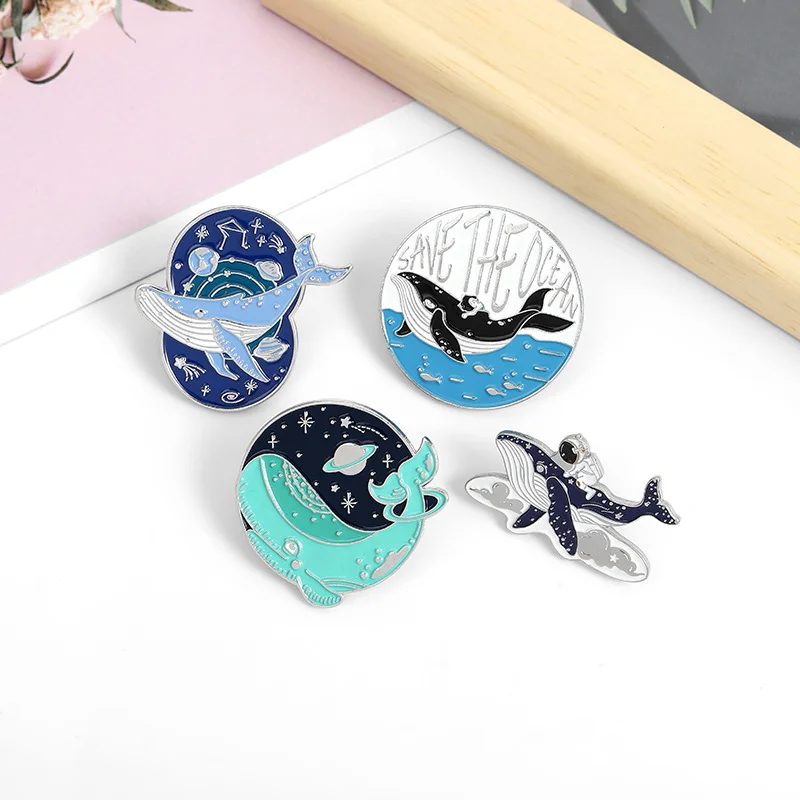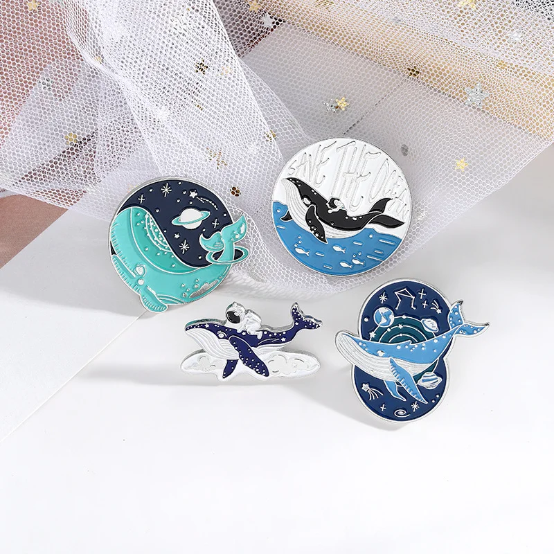 Creative Cartoon Animal Alloy Brooch Personality Cute Whale Creative Astronaut Planet Simple Brooch Badge