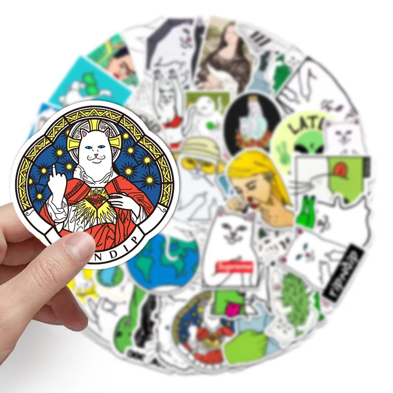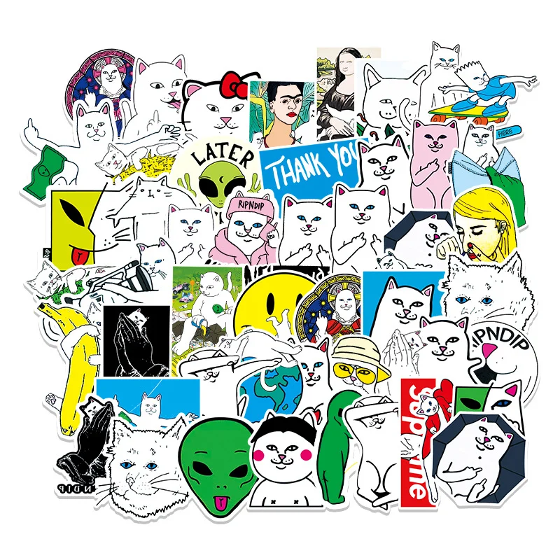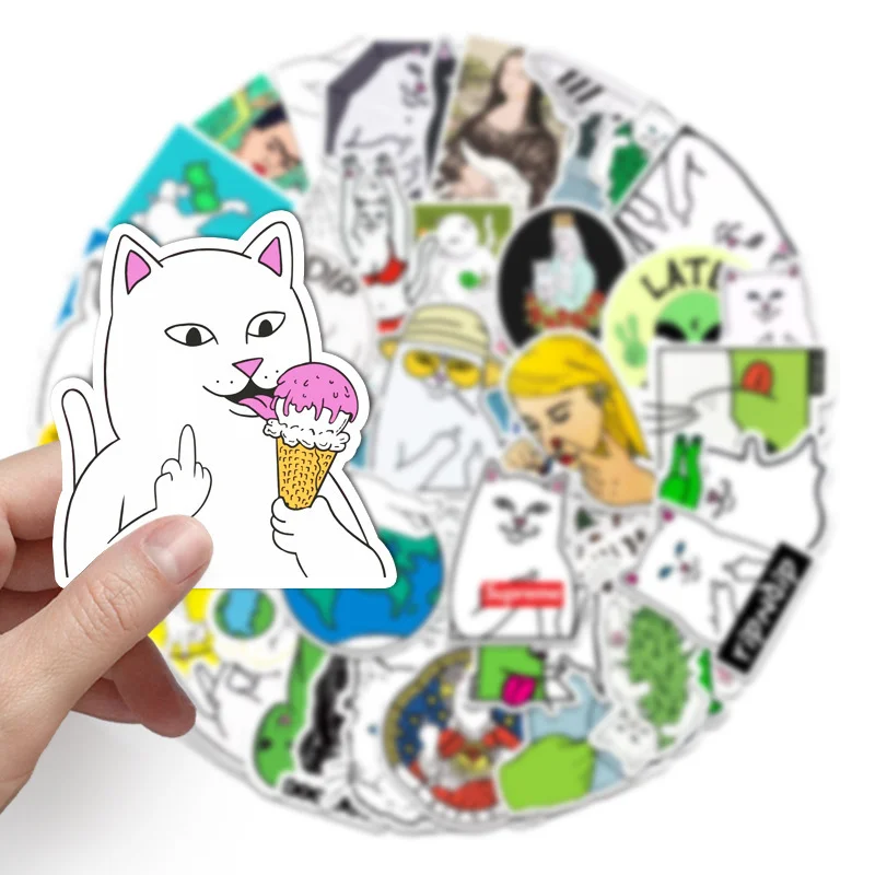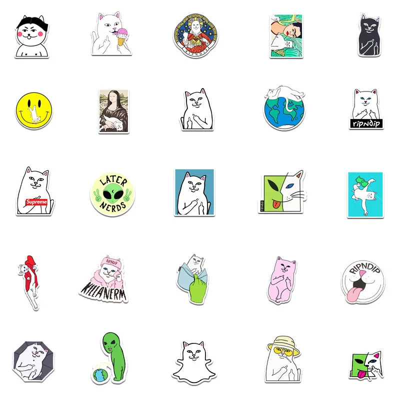 159 Pieces Middle Finger Maochao Brand Graffiti Cartoon Stickers, Luggage Notebook Computer Decoration Waterproof Car Stickers, 53 Pieces In Each Set, A Total of 3 Sets