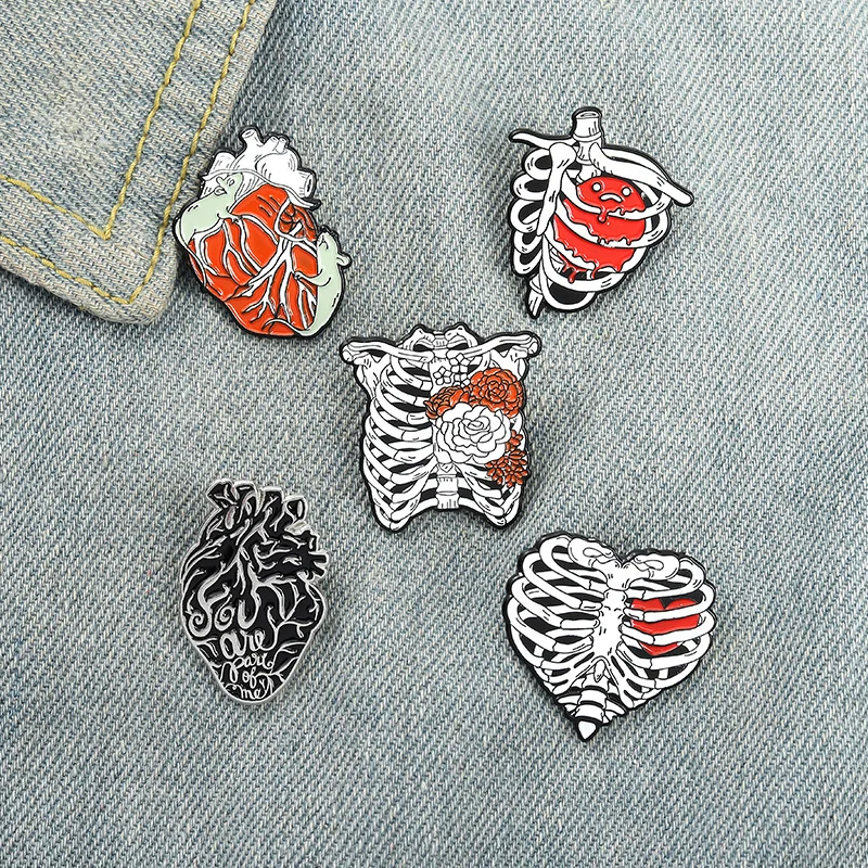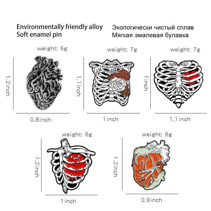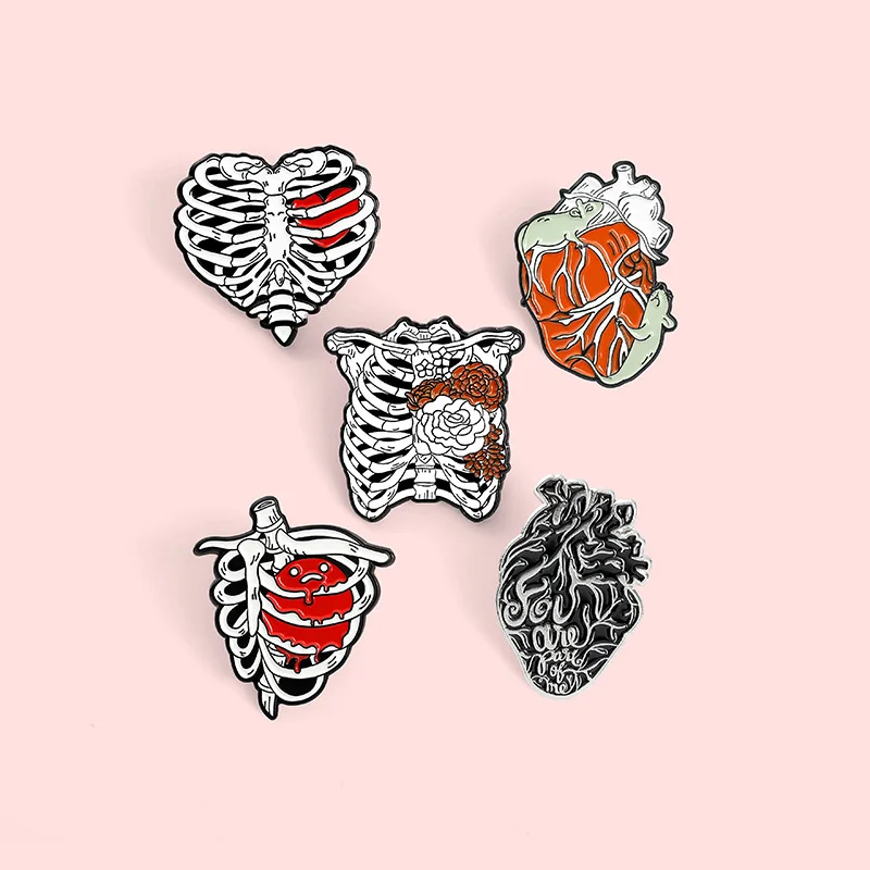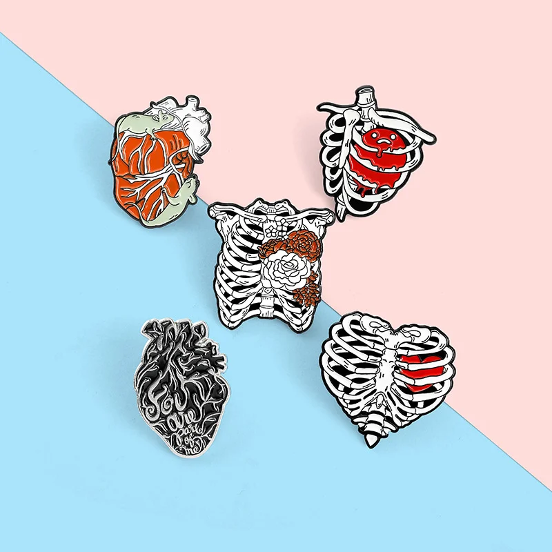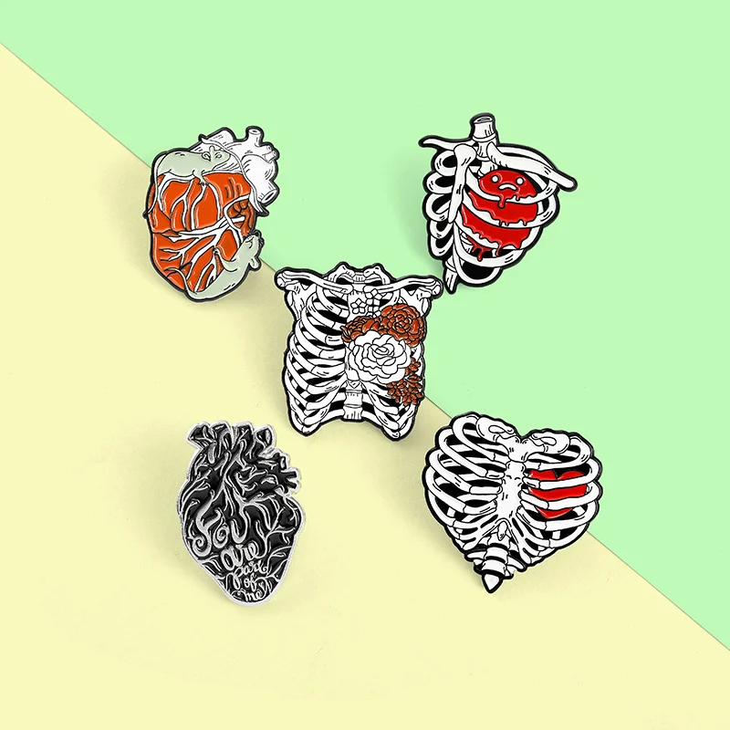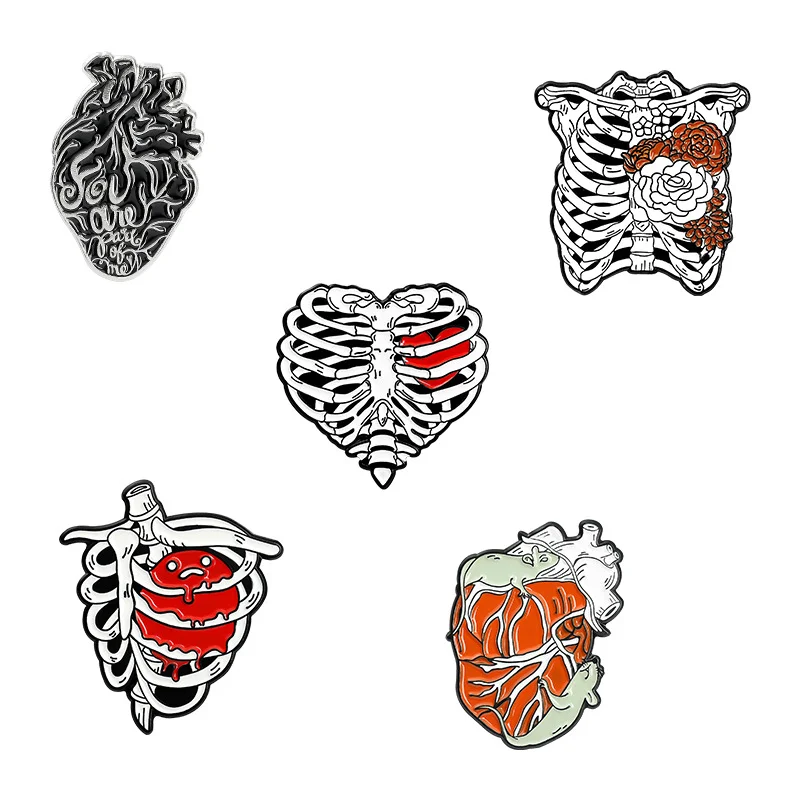 AliExpress hot new style creative cartoon heart rib shape series paint alloy accessories brooch