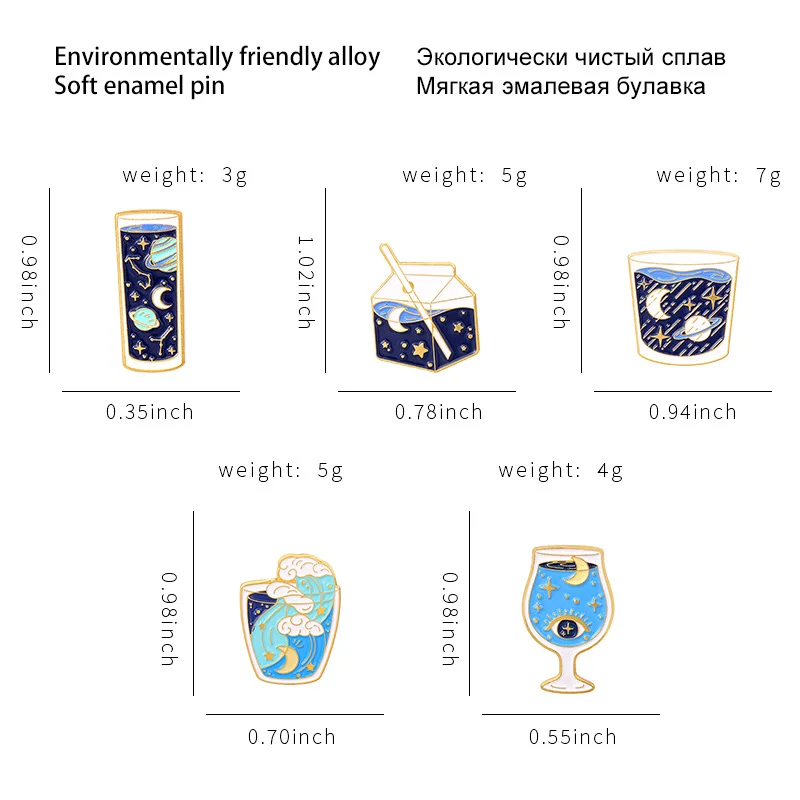 Cartoon Starry Sky Pattern Water Cup Milk Box Enamel Pin Badge Accessory Brooch Wholesale