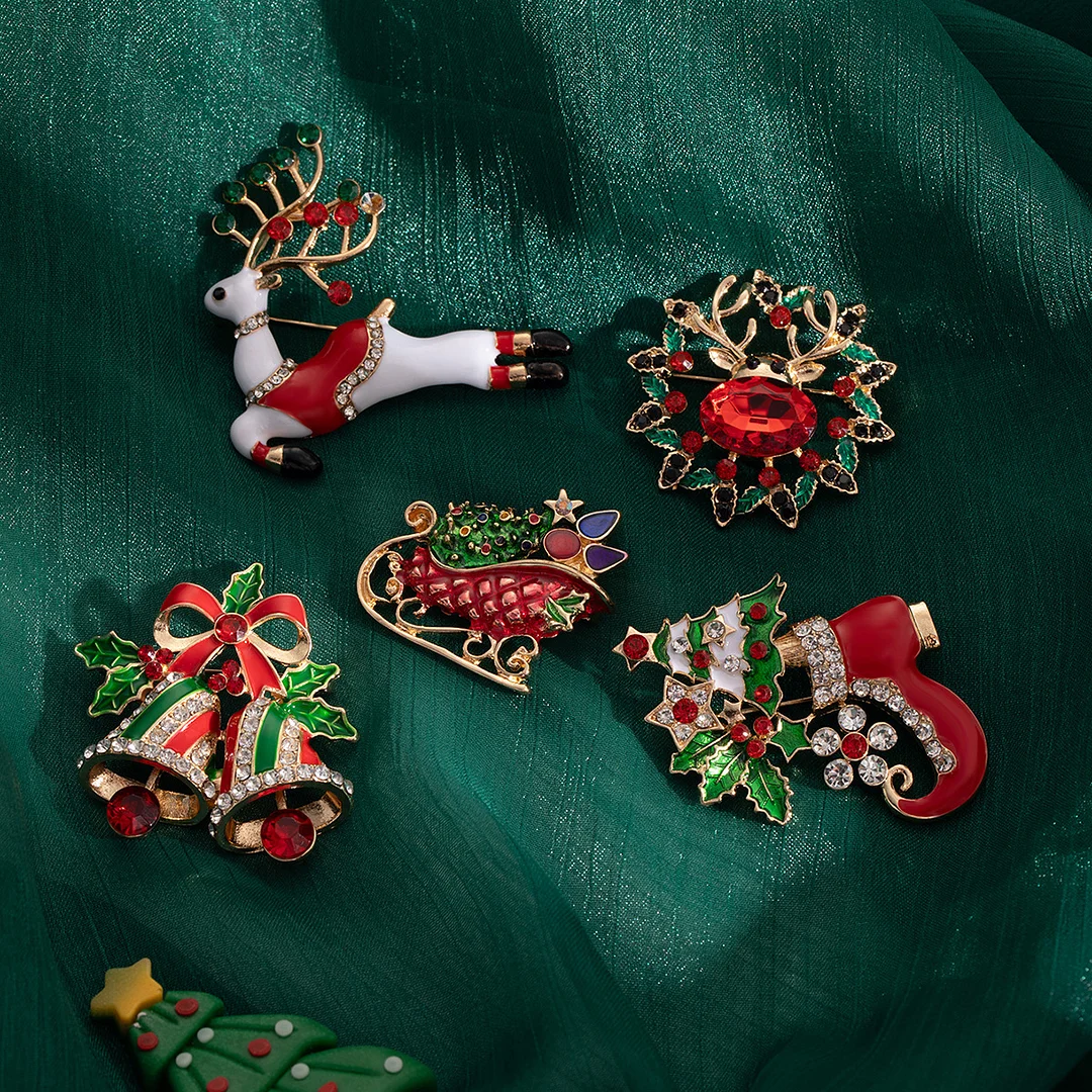 Christmas Elk brooch Cross border personality diamond-encrusted bell bow cartoon medallion