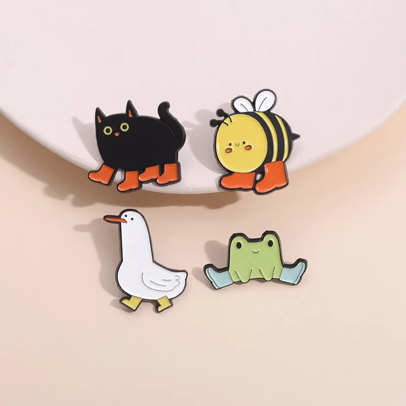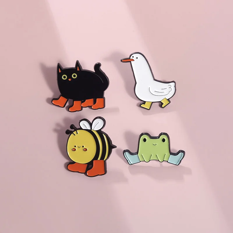 Cute Animal Enamel Pin Brooch Bee Duck Goose Frog Boots Cute Metal Badge Black Cat Exquisite Girl Gift