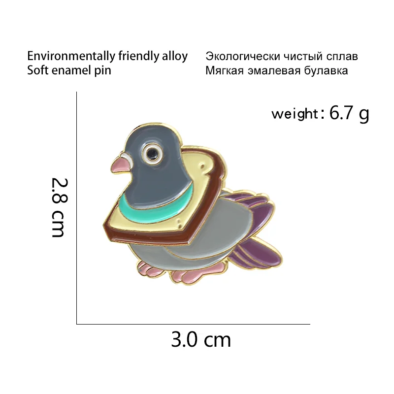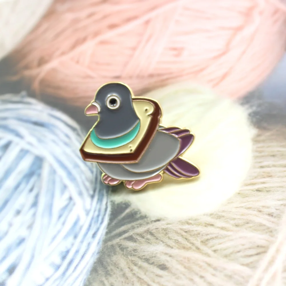 Cute Bird Bread Metal Pigeon Enamel Pin Wheat Delicious Slice Collar Fun Cartoon Animal Badge Lapel Brooch Shirt Jewelry Gift