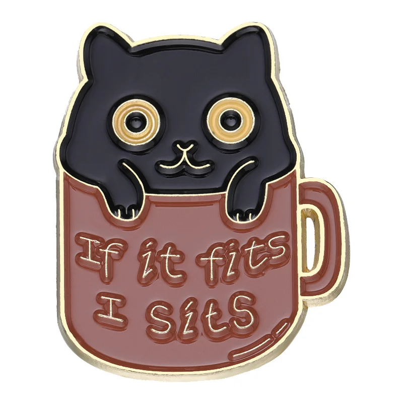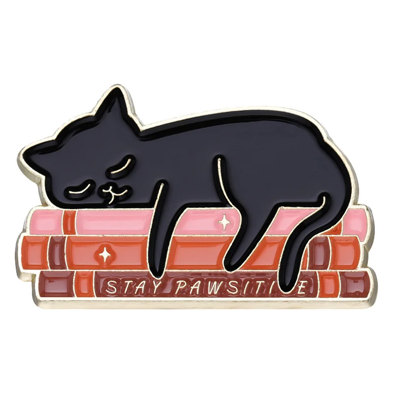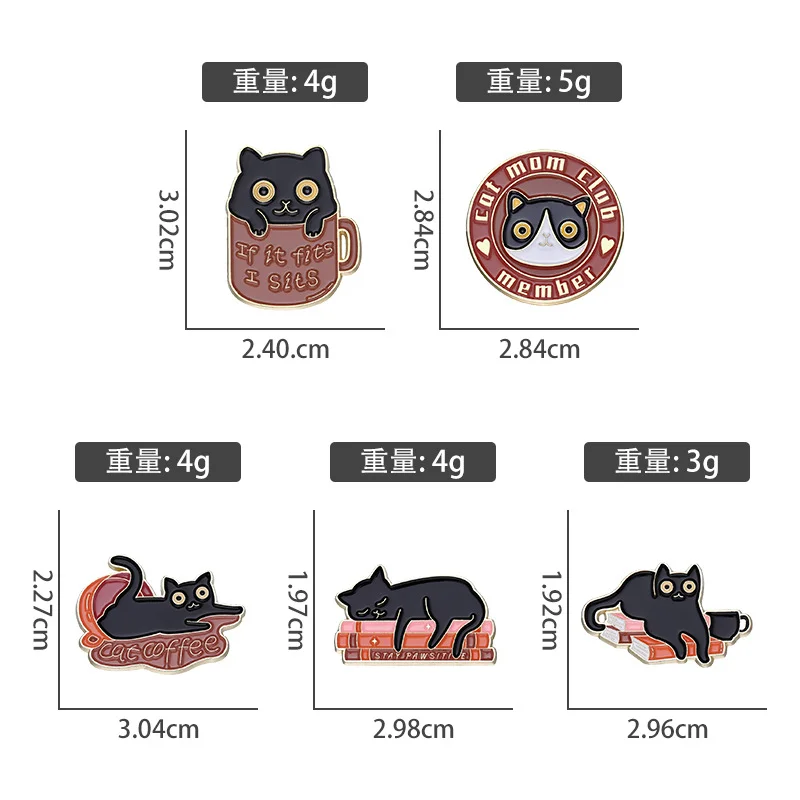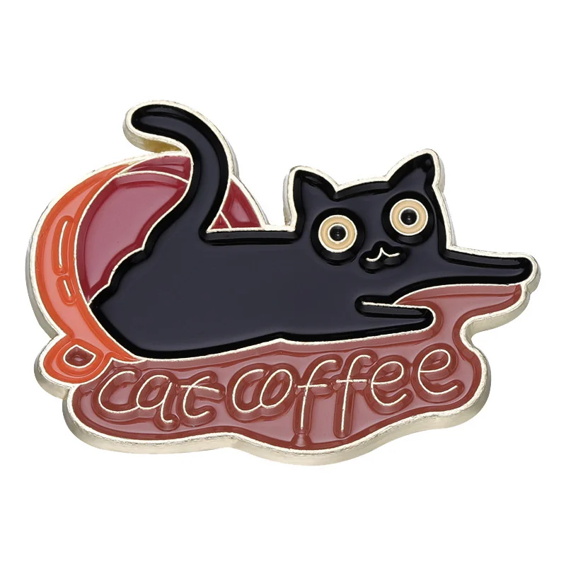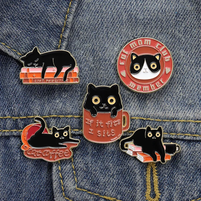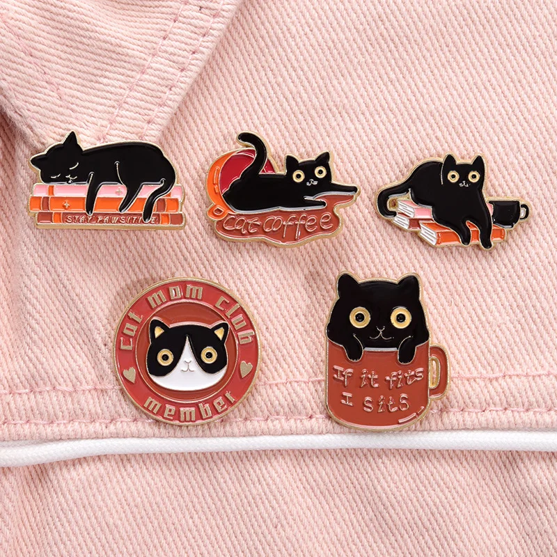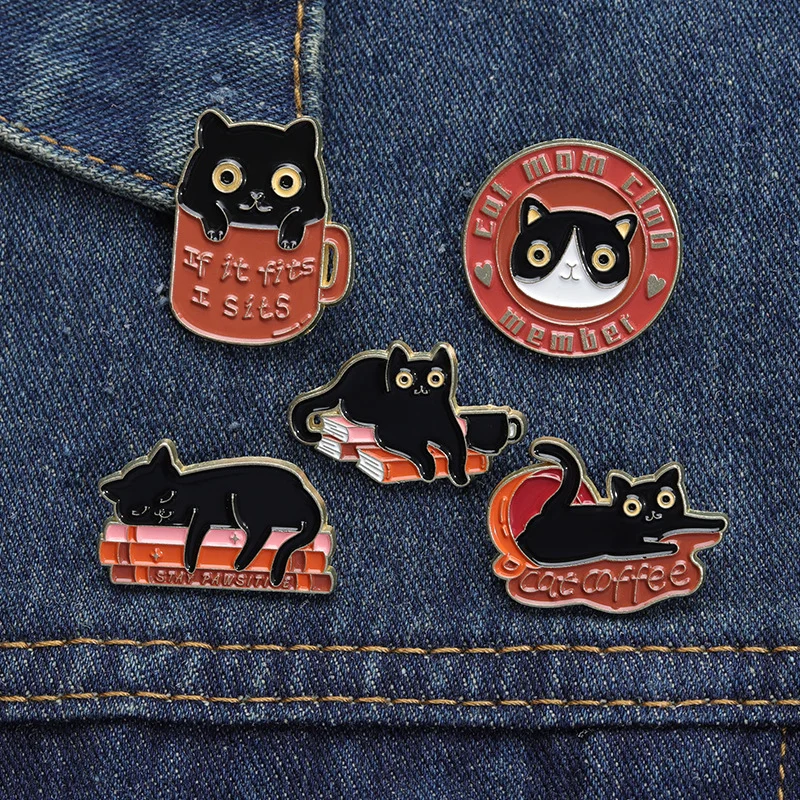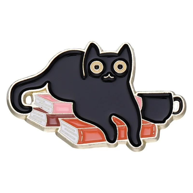 Cute Cartoon Cat Animal Brooch Black Cat Book Cup Coffee Badge Denim Accessories Bag Enamel Pin Badge