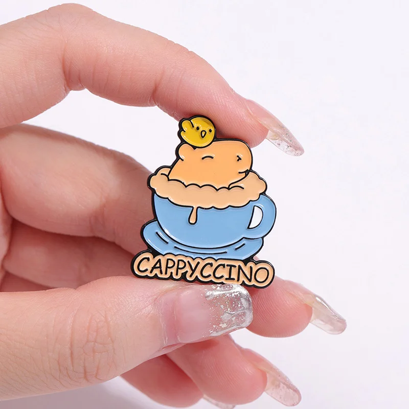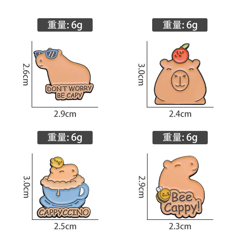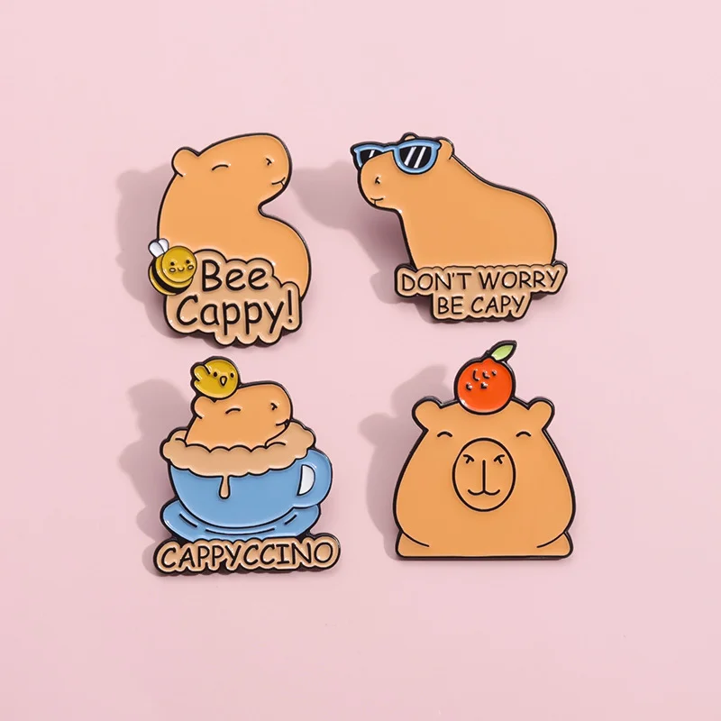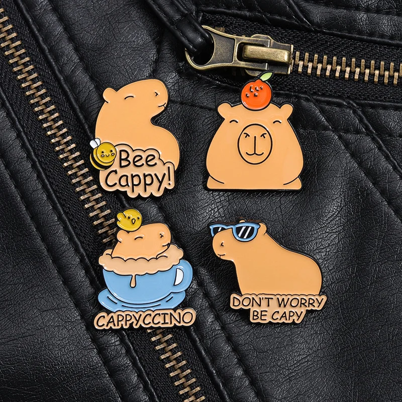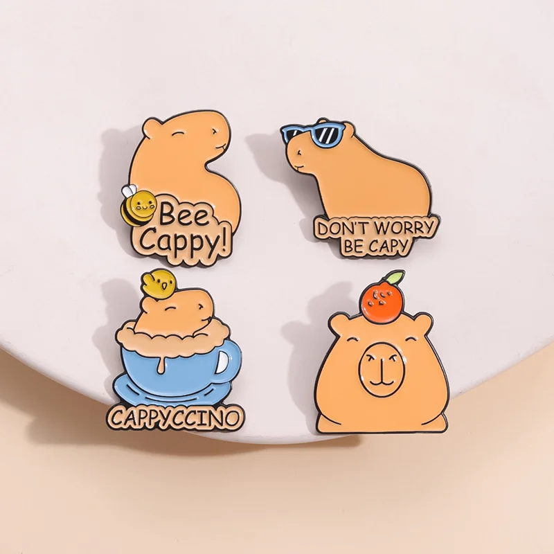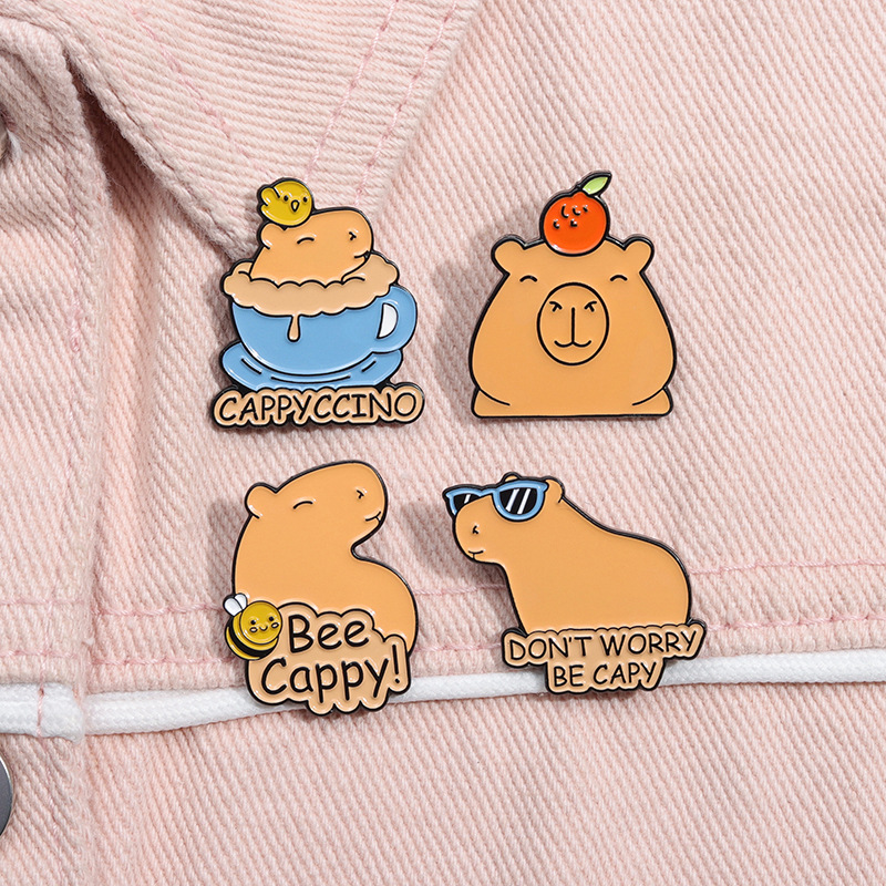 DON'T WORRY BE CAPY、Bee Cappy、CAPPYCCINO、 Cute Animal Brooch Guinea Pig Capybara Orange Winter Clothing Accessories Hippopotamus Pet Metal Badge Enamel Pin